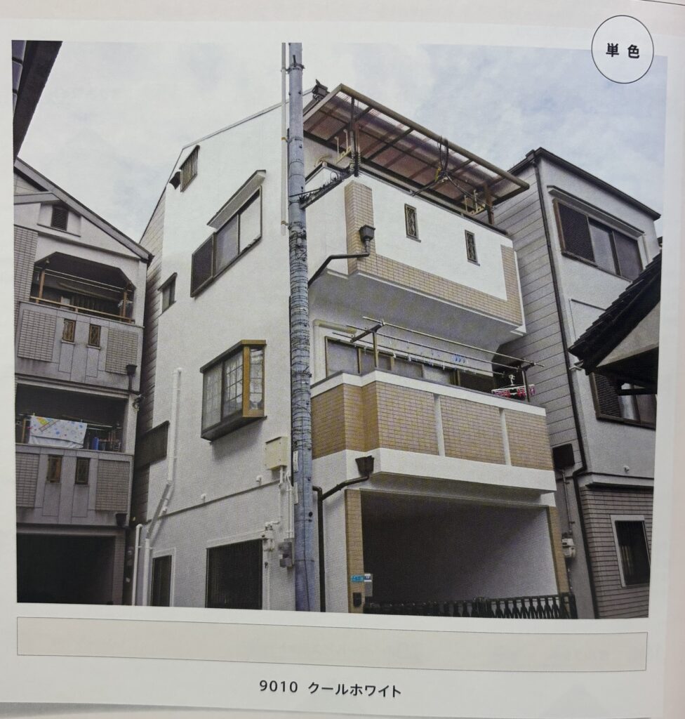 時には、カタログやサンプルで見た色が実際に塗装した後に思いのほか目立つこともあれば、逆に予想以上に地味に感じられることもあります。これは、隣接する建物の色彩との調和が影響しているためです。