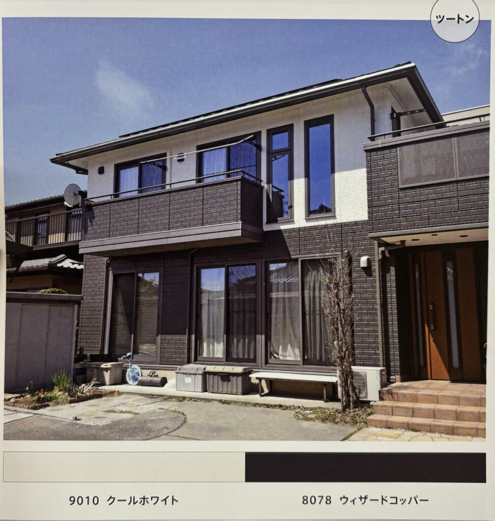 シックな色でツートンの場合、同系色と組み合わせ、建物の雰囲気をまとめることができます。