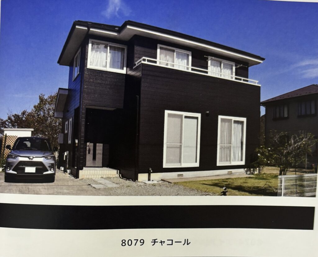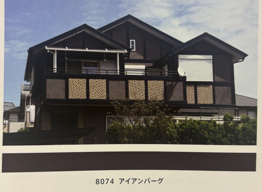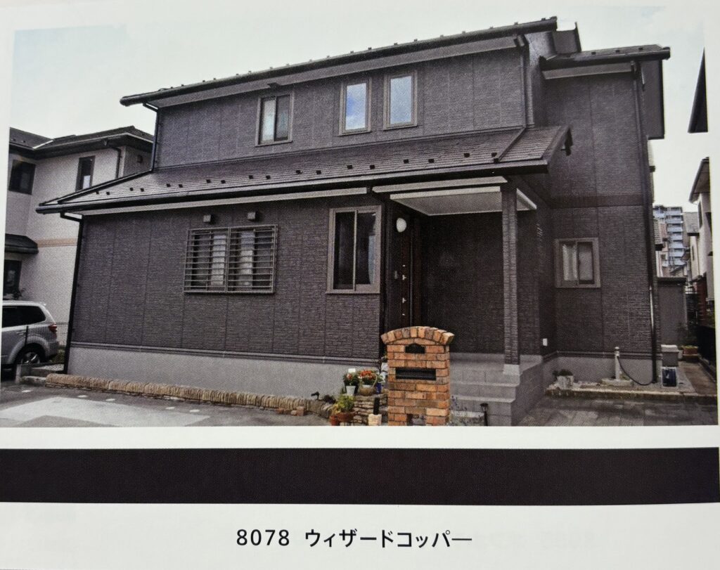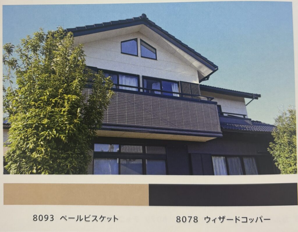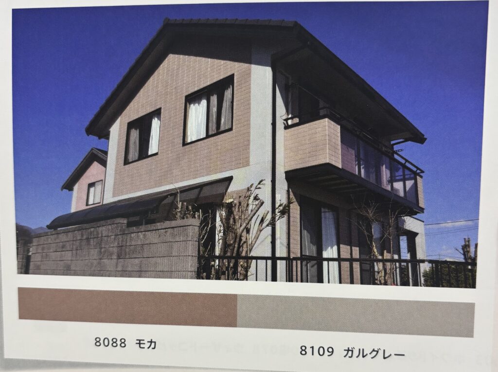 同系の明るい色と組み合わせ、ベランダや1階部分等に使用すると、建物にメリハリが出る、飽きがきにくい色です。