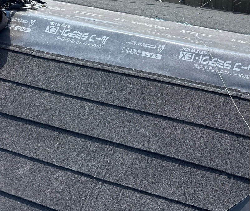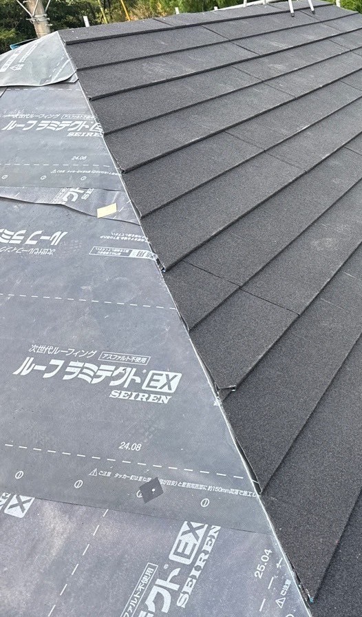 ルーフィングは野地板の上に施工され、軒先から棟へ向かって重ね張りされます。