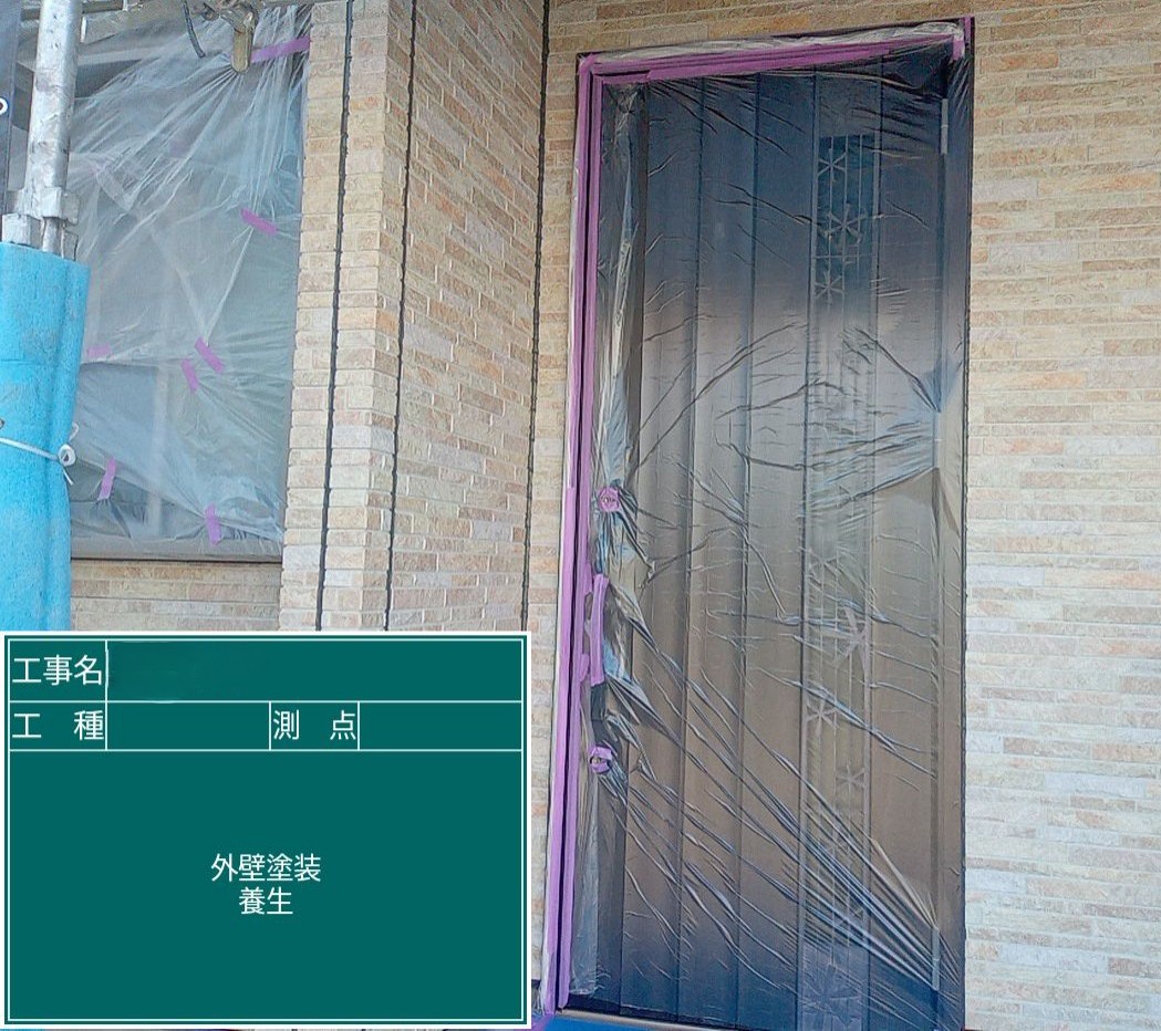 養生は、塗装や高圧洗浄水の飛散を防いだり、塗装の仕上がりをきれいにする目的があります。養生の仕方によっては塗装の仕上がりに大きな違いが生まれる大事な作業です。