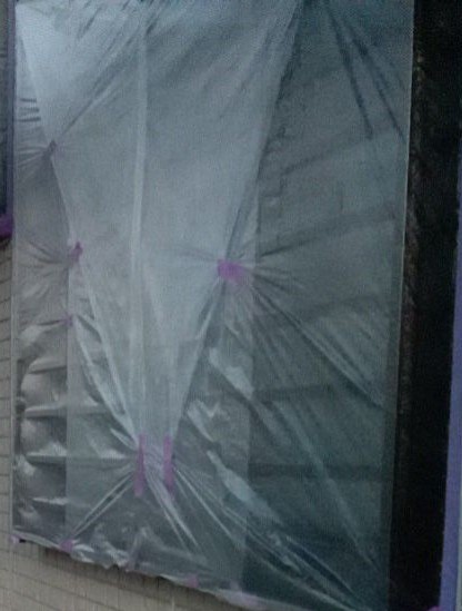 窓枠やベランダの手すりなどはマスキングテープとポリシートが一緒になったマスカーを使って保護します。窓に関しては、塗料が窓の隙間から浸入しないように窓全体を覆う必要があります。