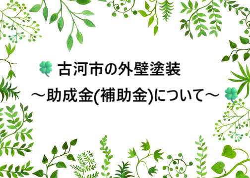 🍀古河市の外壁塗装~助成金(補助金)について~🍀 2025年12月08日(月) .。・.。*゚>。。.。・.。*゚>。。.。・.。*゚>。。.。・.。*゚>。。.。・.。*゚ スタッフブログをご覧いただきありがとうございます。 古河市、野木町を中心に塗装工・・・