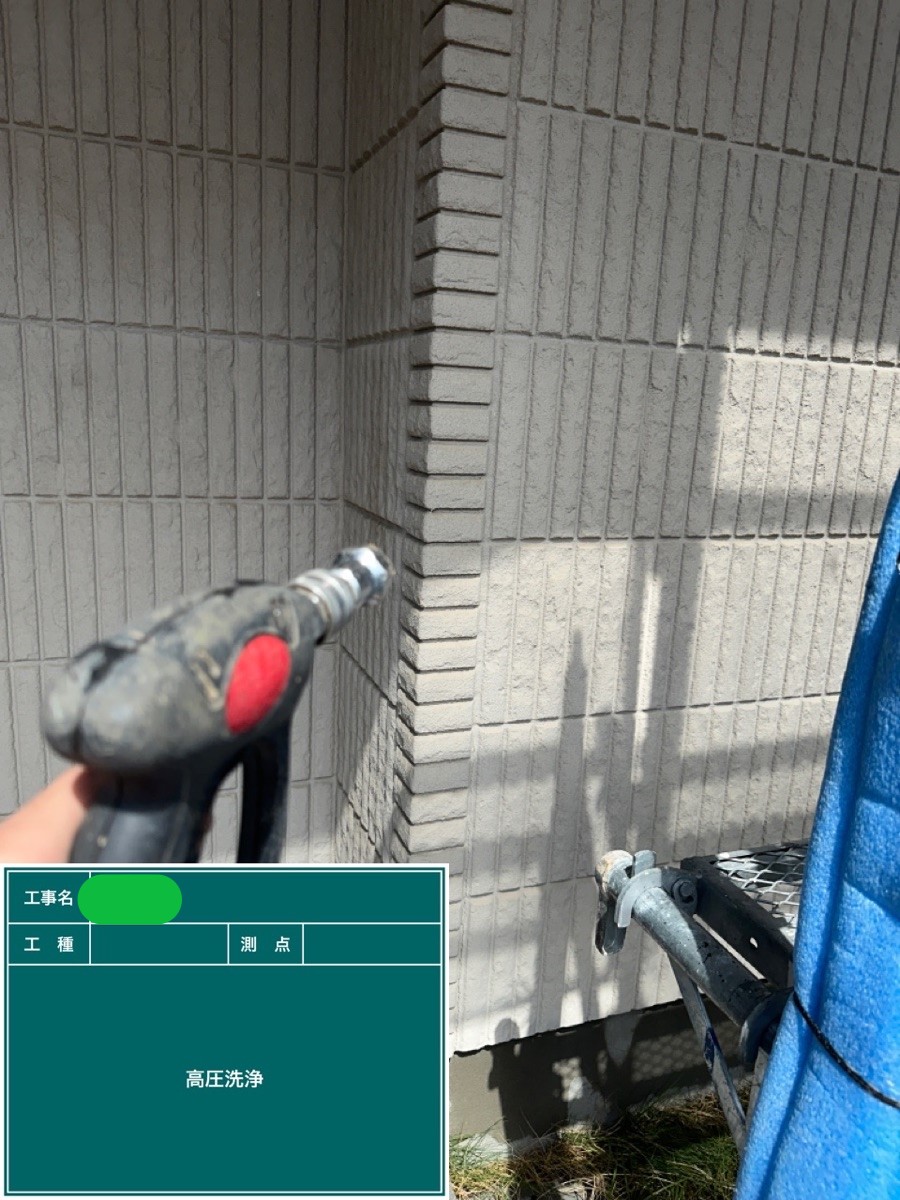 高圧洗浄 外壁に付着した汚れなどを洗い流します。