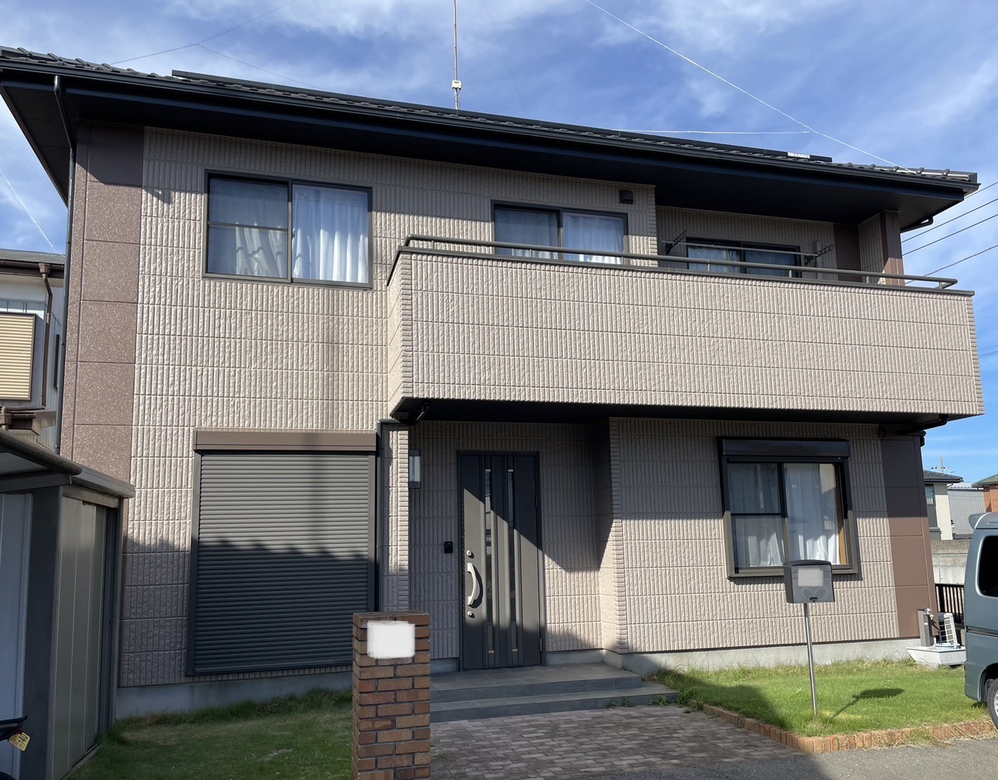 | 使用塗料 | 外壁/アステックペイント/超低汚染プラチナリファイン2000Si-IR 8083(ベイジュ) 8211(コーヒーブラウン) |