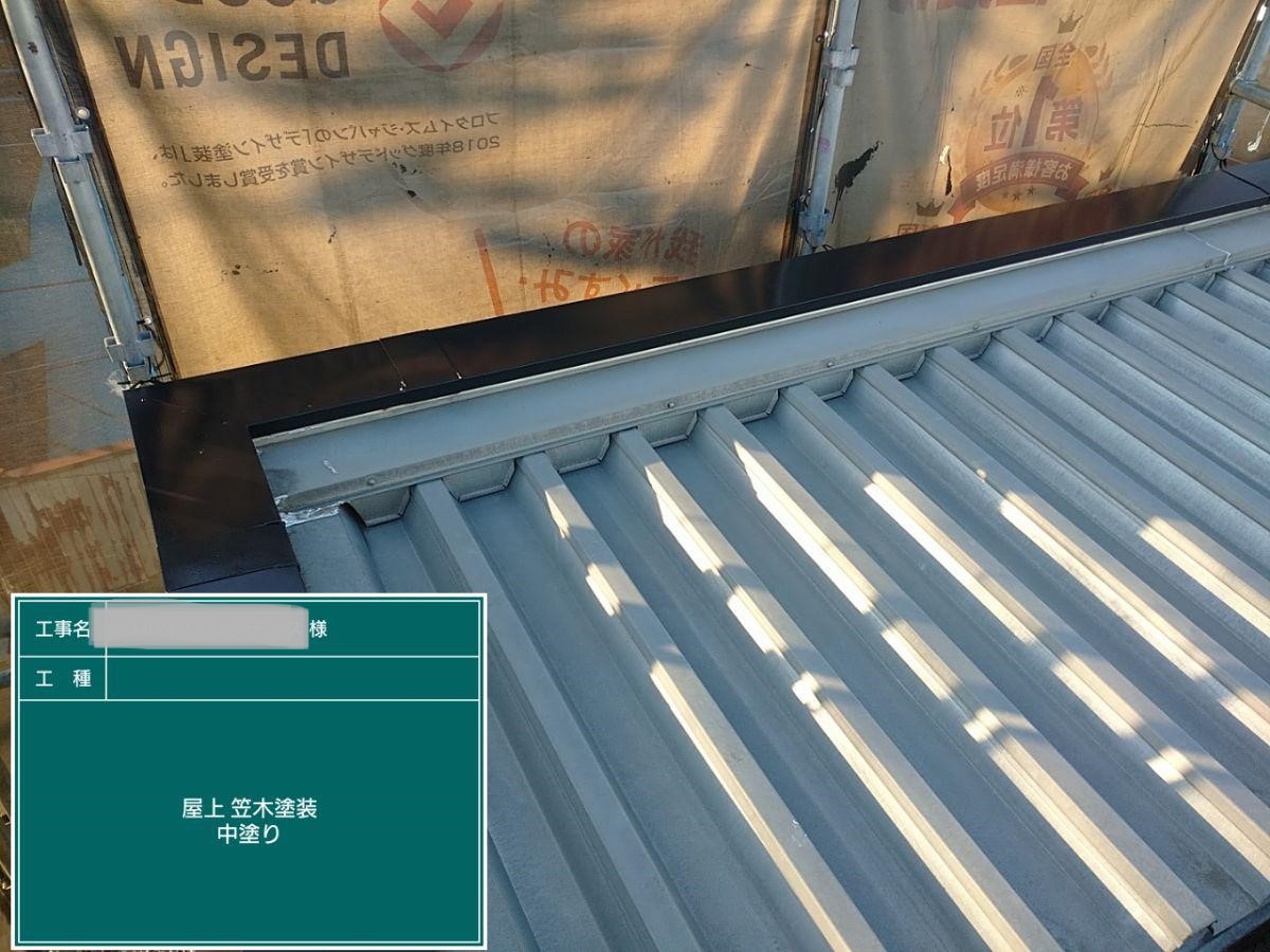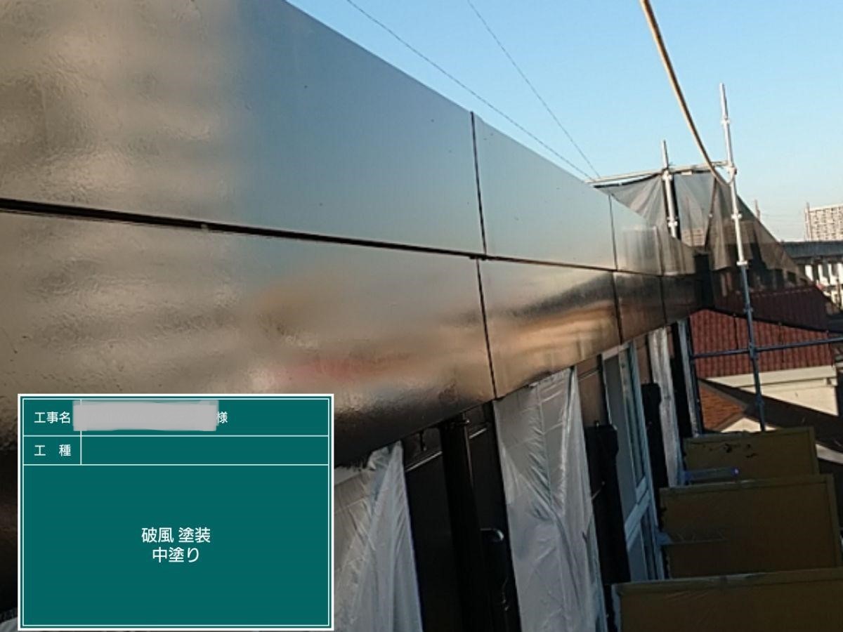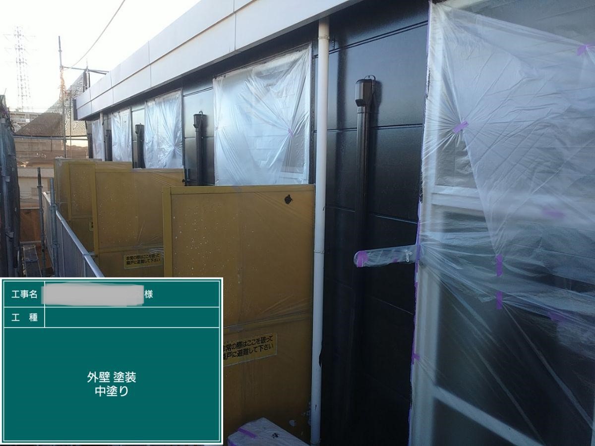 中塗り➡上塗りと2回に分けて塗装する事で性能を耐久年数の間しっかり持続させるために中塗りの塗装が必須です。