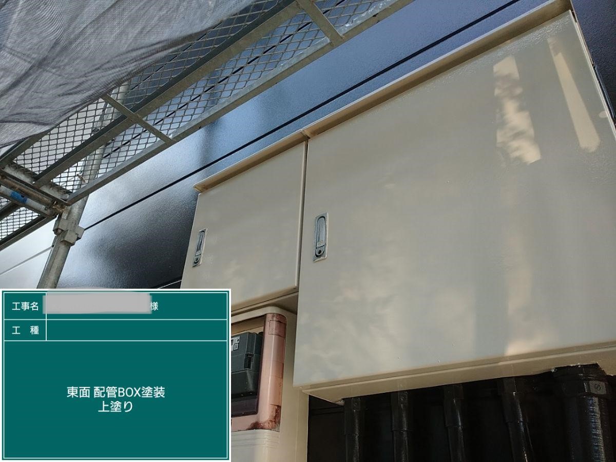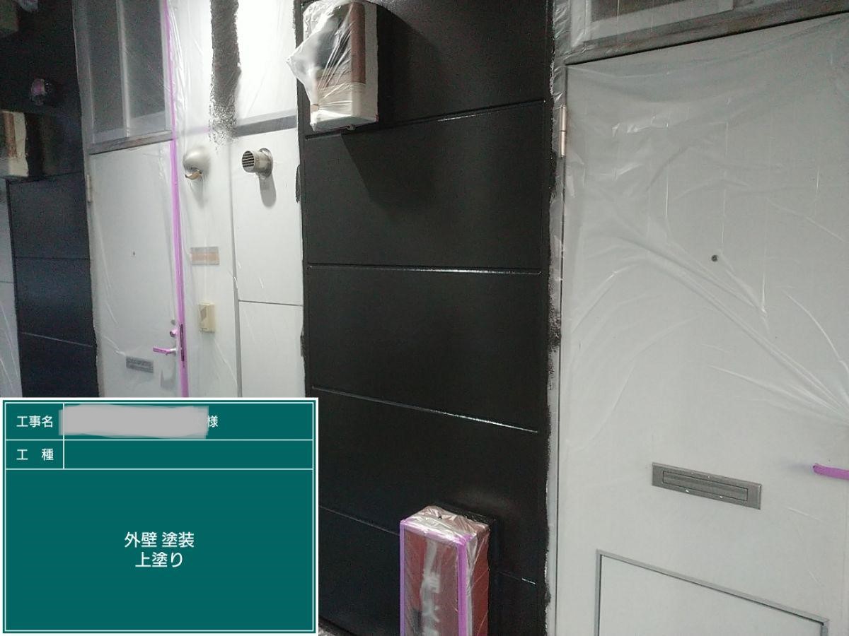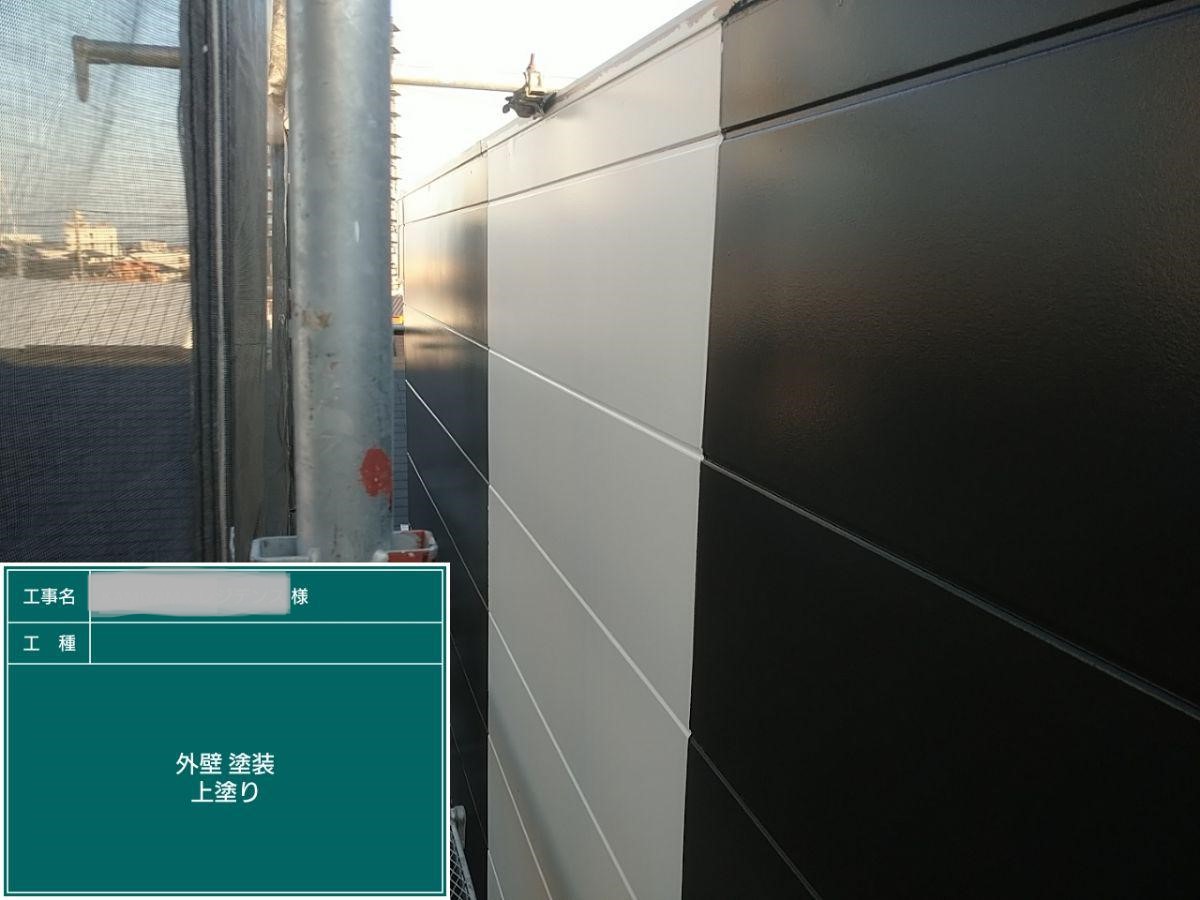 外壁の上塗りを行いました。