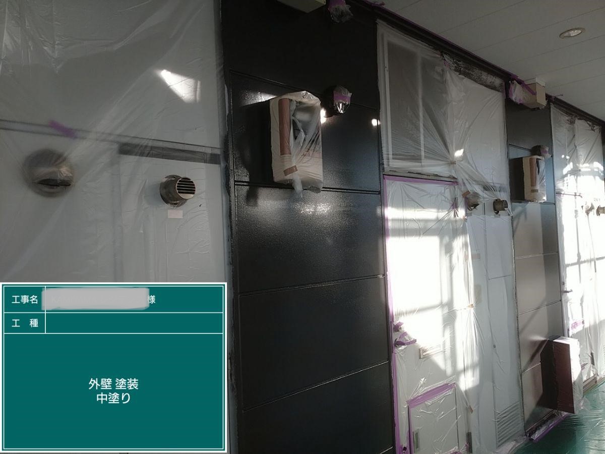 外壁の中塗りを行いました。