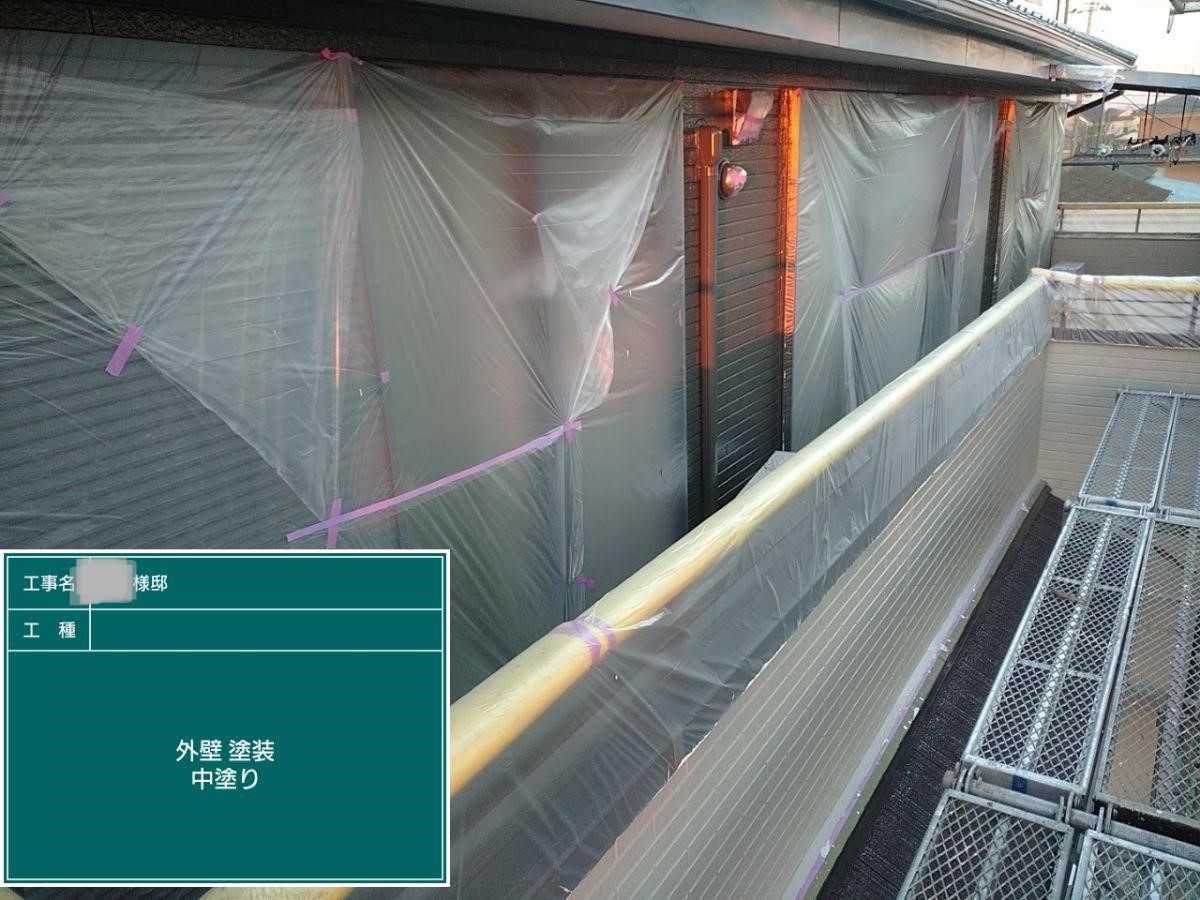 外壁の中塗りを行いました。
