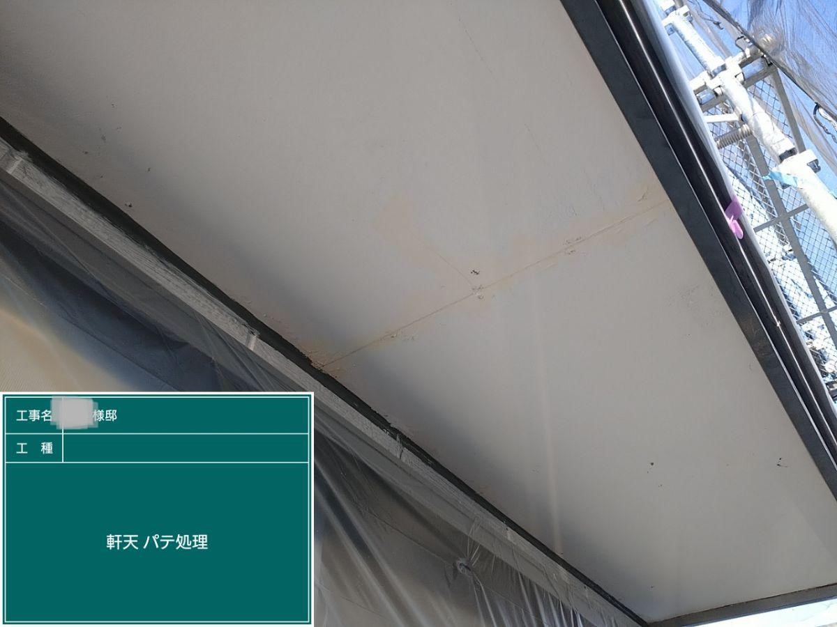 軒天のパテ処理を行いました。
