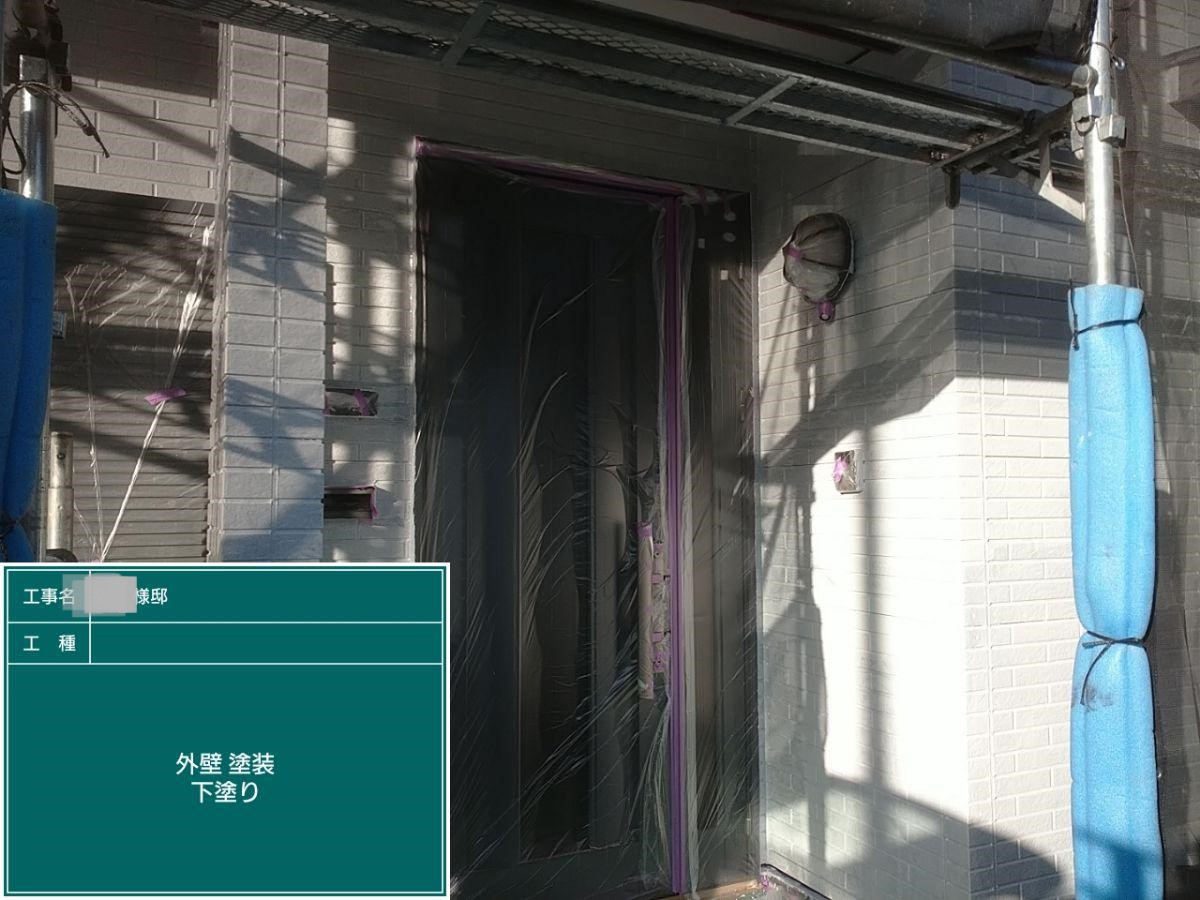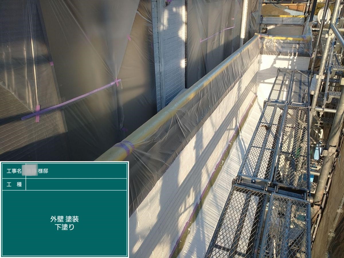 外壁の下塗りを行いました。