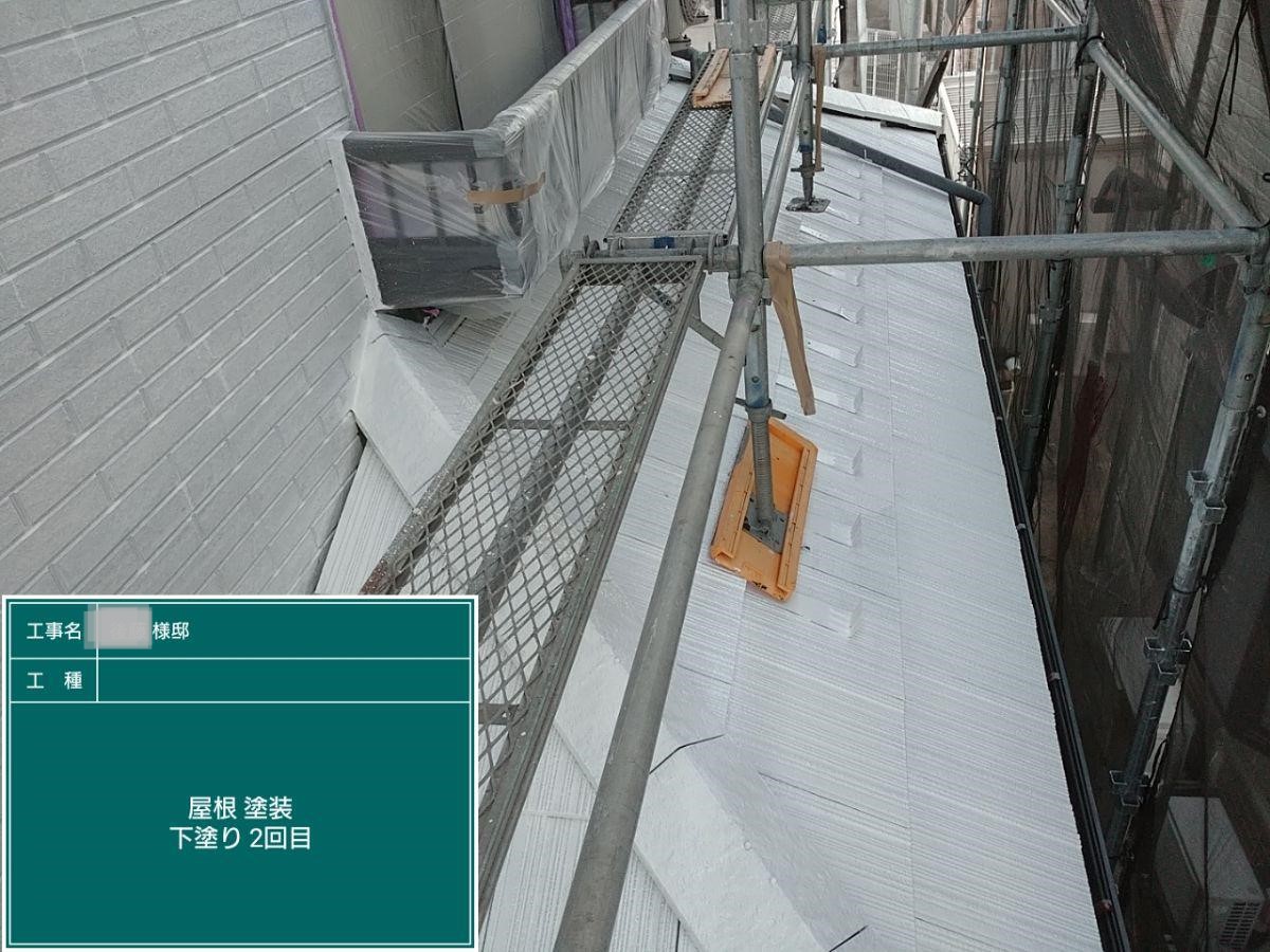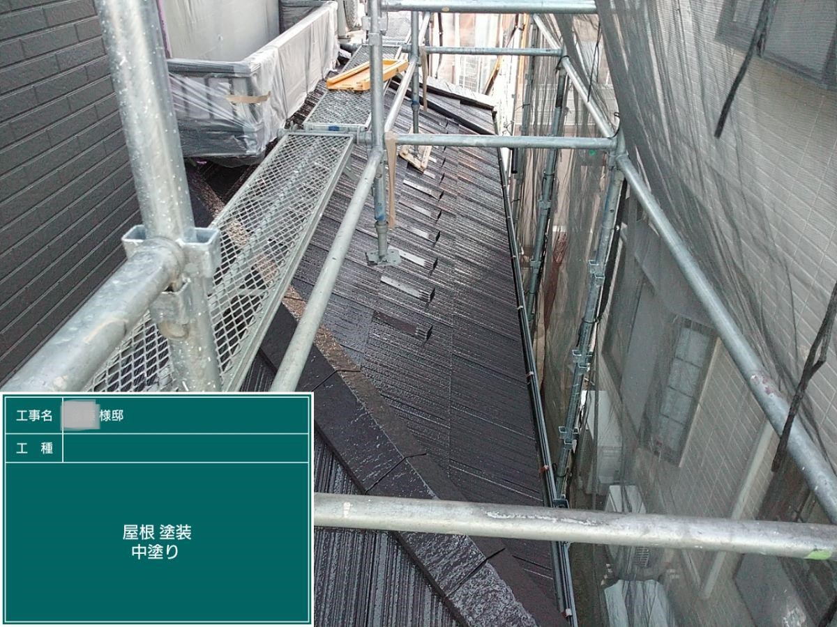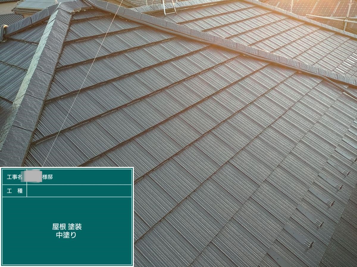 中塗り➡上塗りと2回に分けて塗装する事で性能を耐久年数の間しっかり持続させるために中塗りの塗装が必須です。