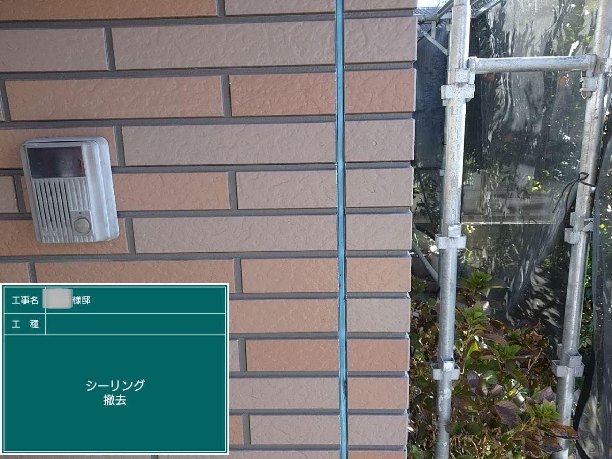 既存のシーリングの撤去工事を行いました。