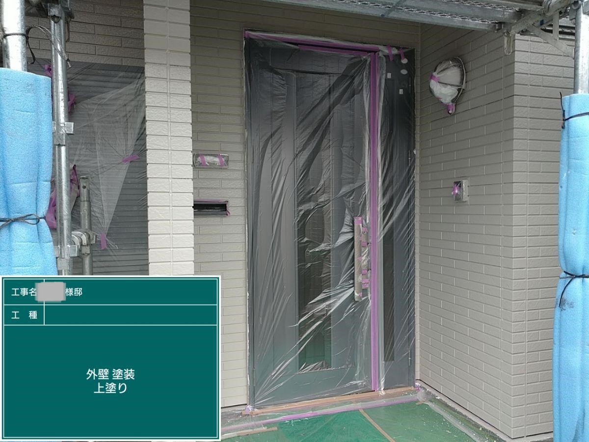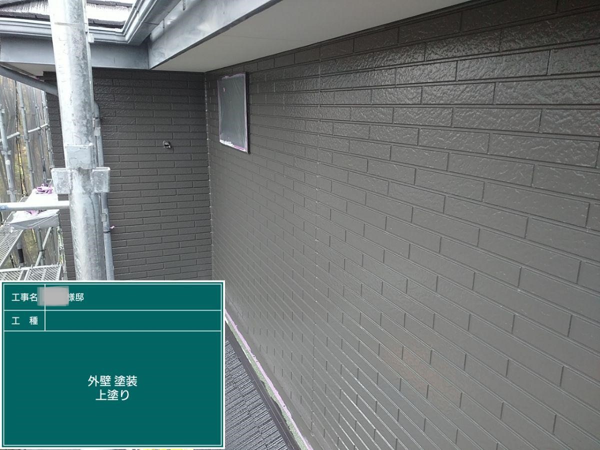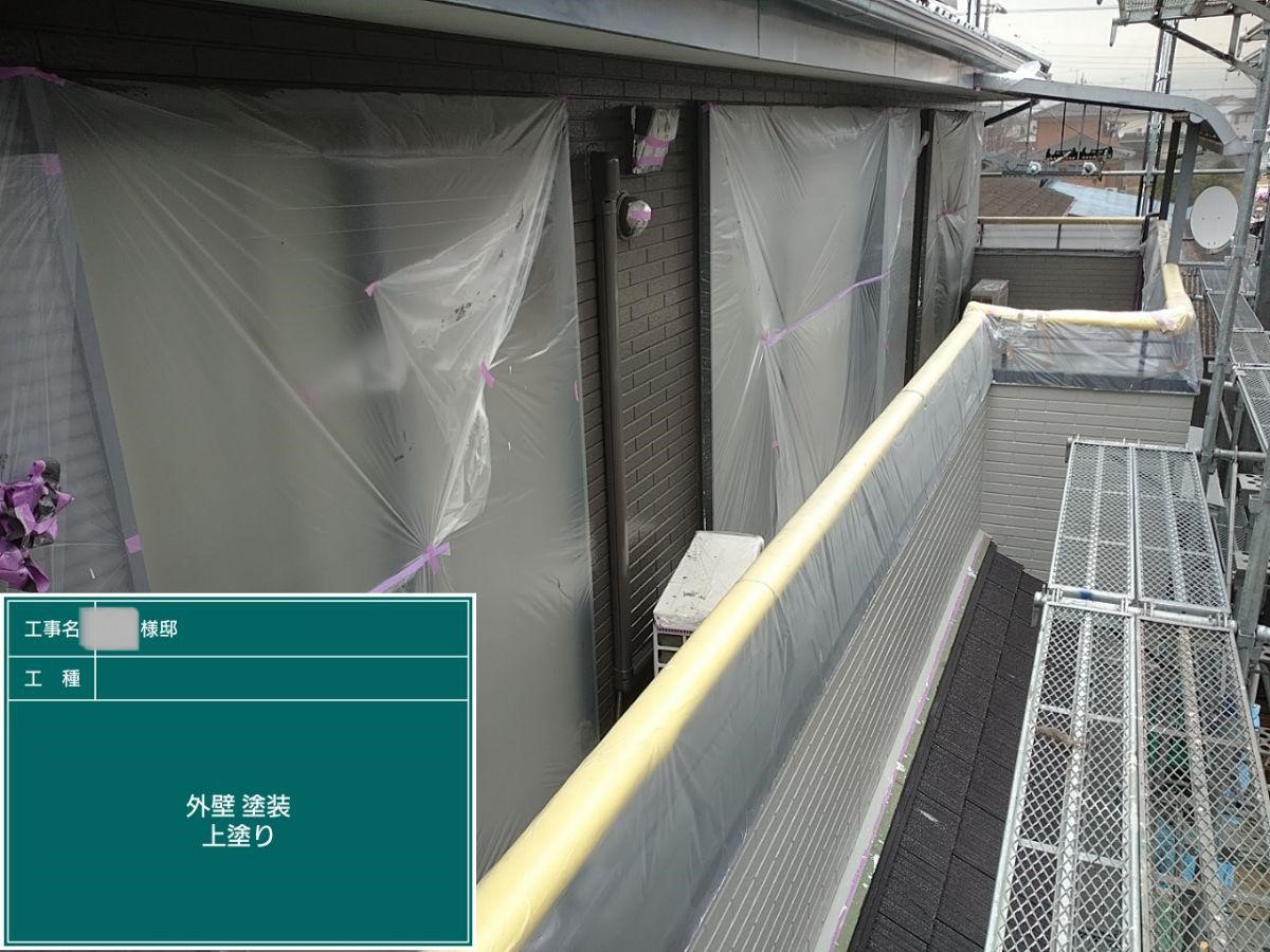 外壁の上塗りを行いました。