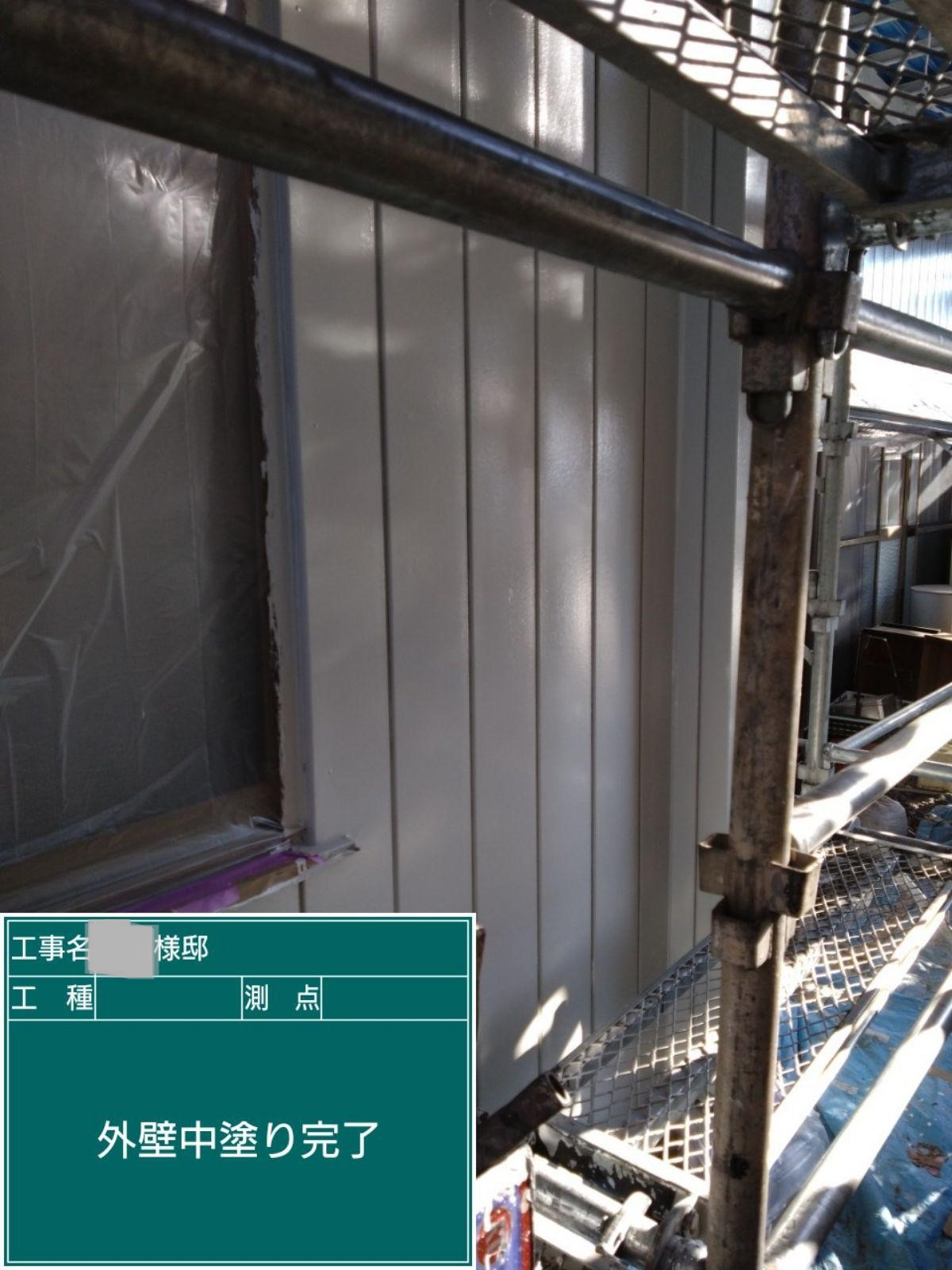 外壁の中塗りを行いました。