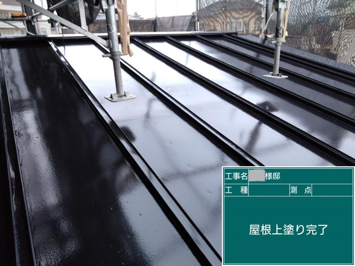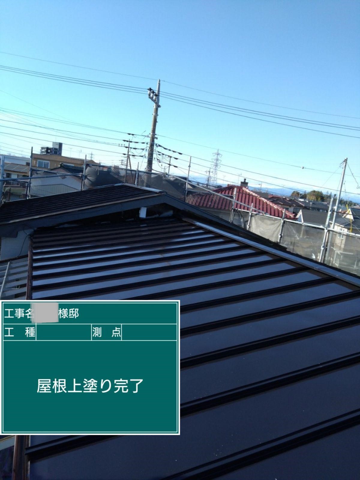 屋根の上塗りを行いました。