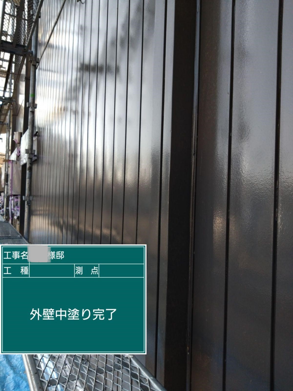 中塗り➡上塗りと2回に分けて塗装する事で性能を耐久年数の間しっかり持続させるために中塗りの塗装が必須です。