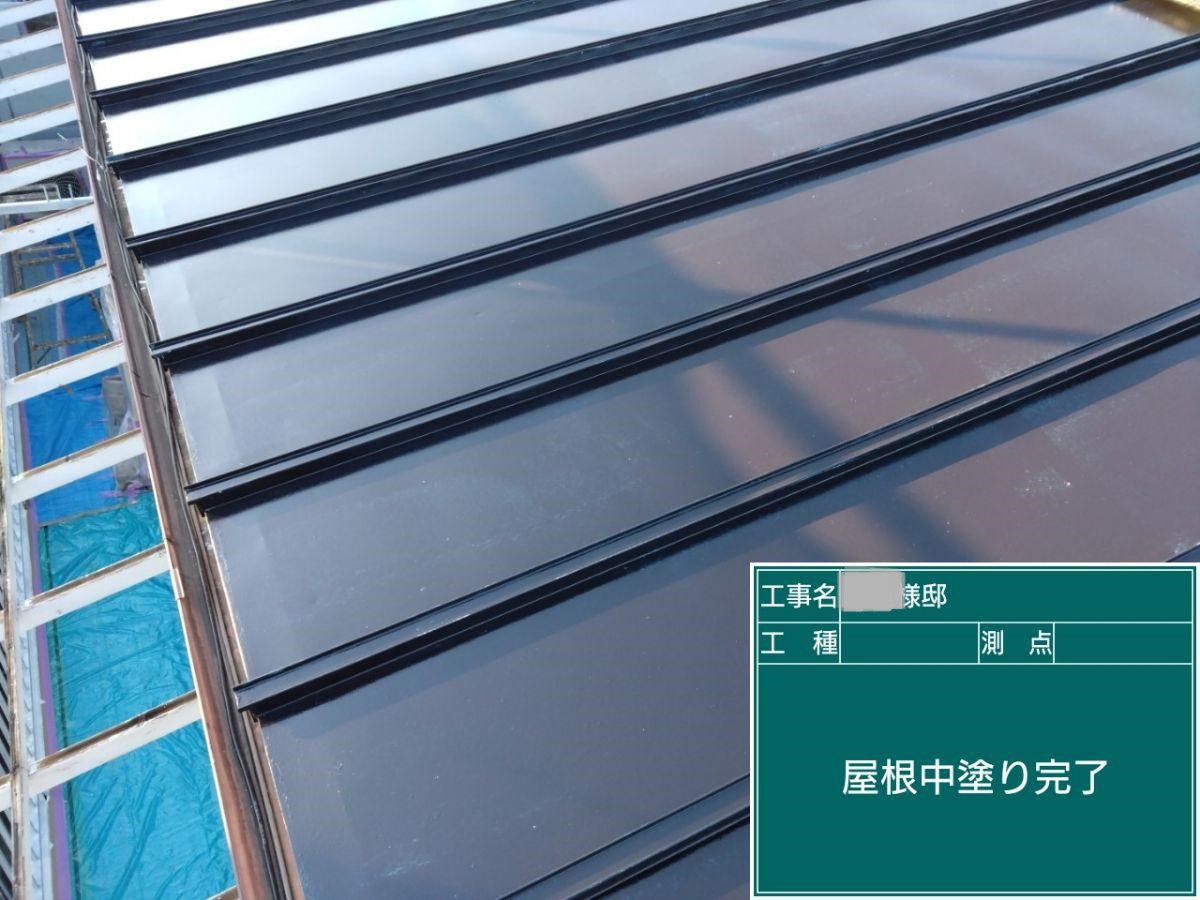 屋根の中塗りを行いました。