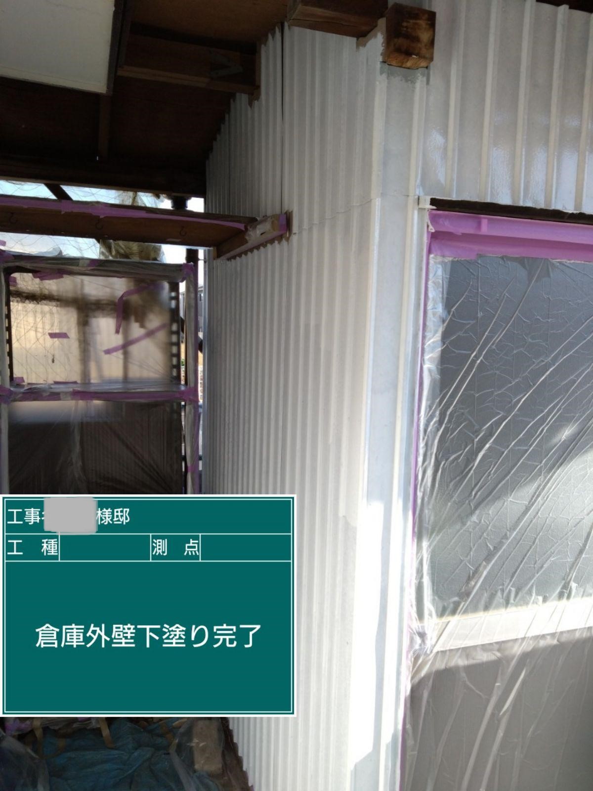 倉庫外壁下塗り施工