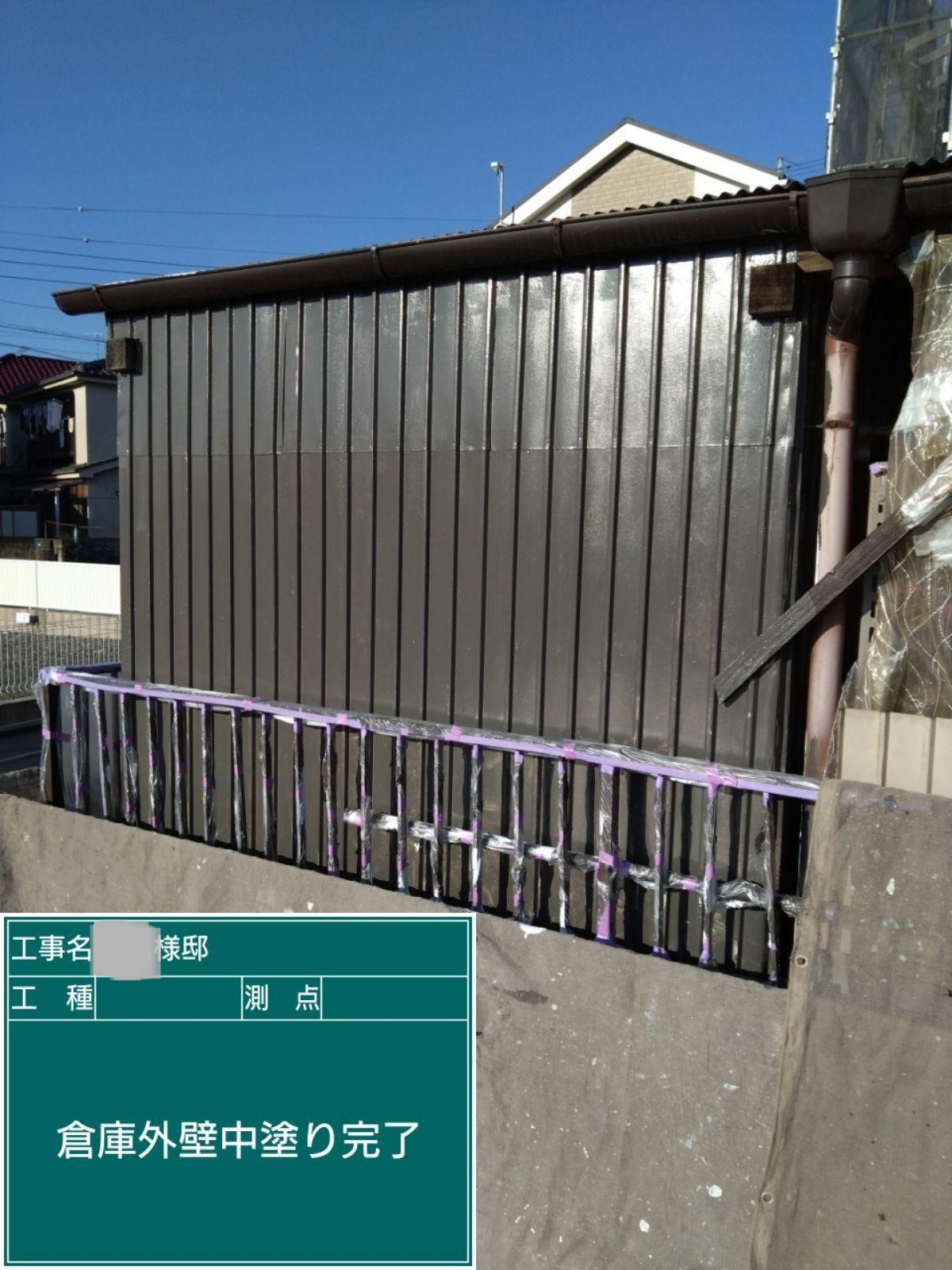倉庫外壁中塗り施工