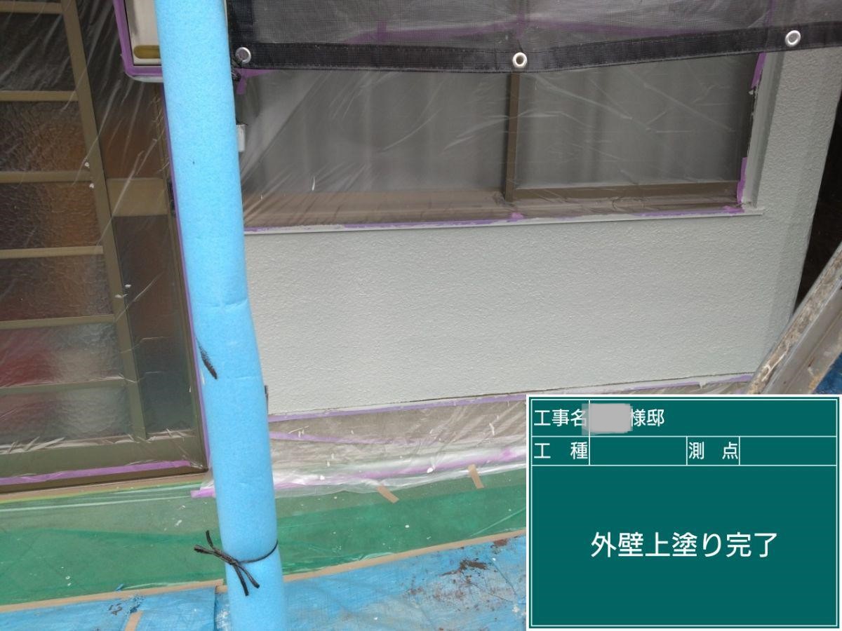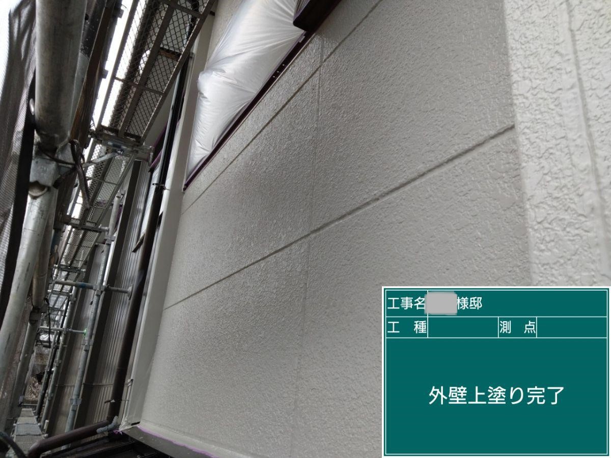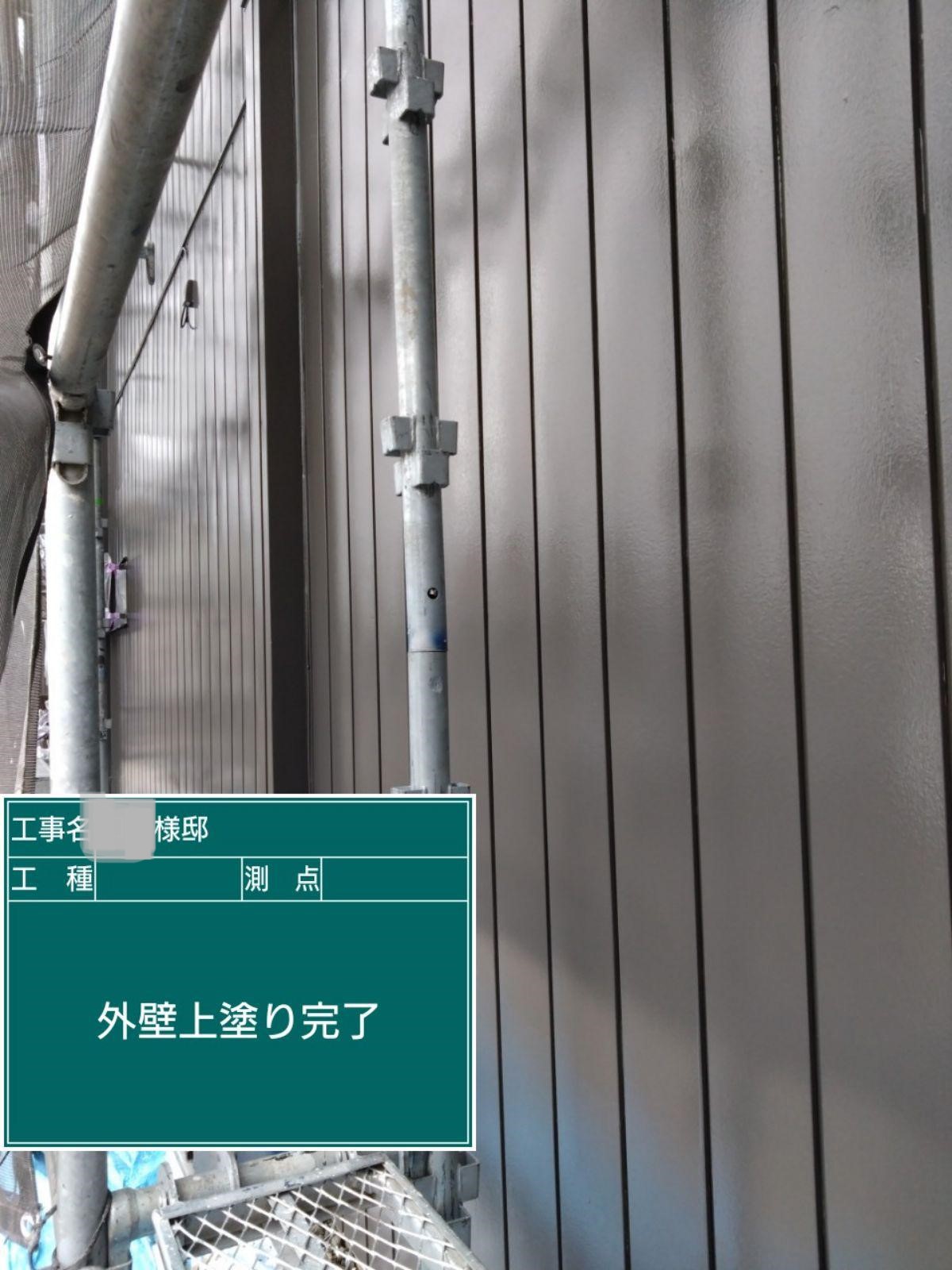 外壁の上塗りを行いました。