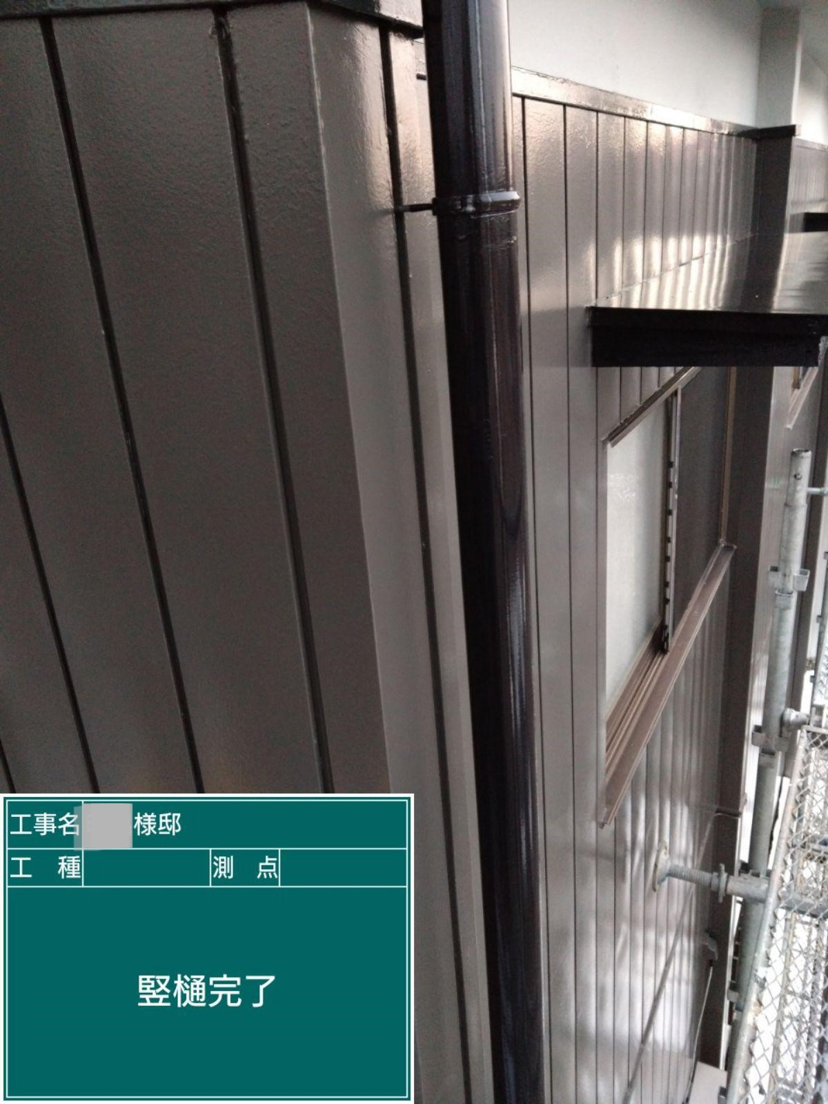 竪樋塗装を行いました。