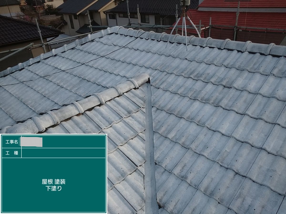 屋根下塗り 下塗り材を塗ることで塗料が吸い込まれるのを防ぐことができるため、色ムラや艶のムラのない綺麗な仕上がりにできます!