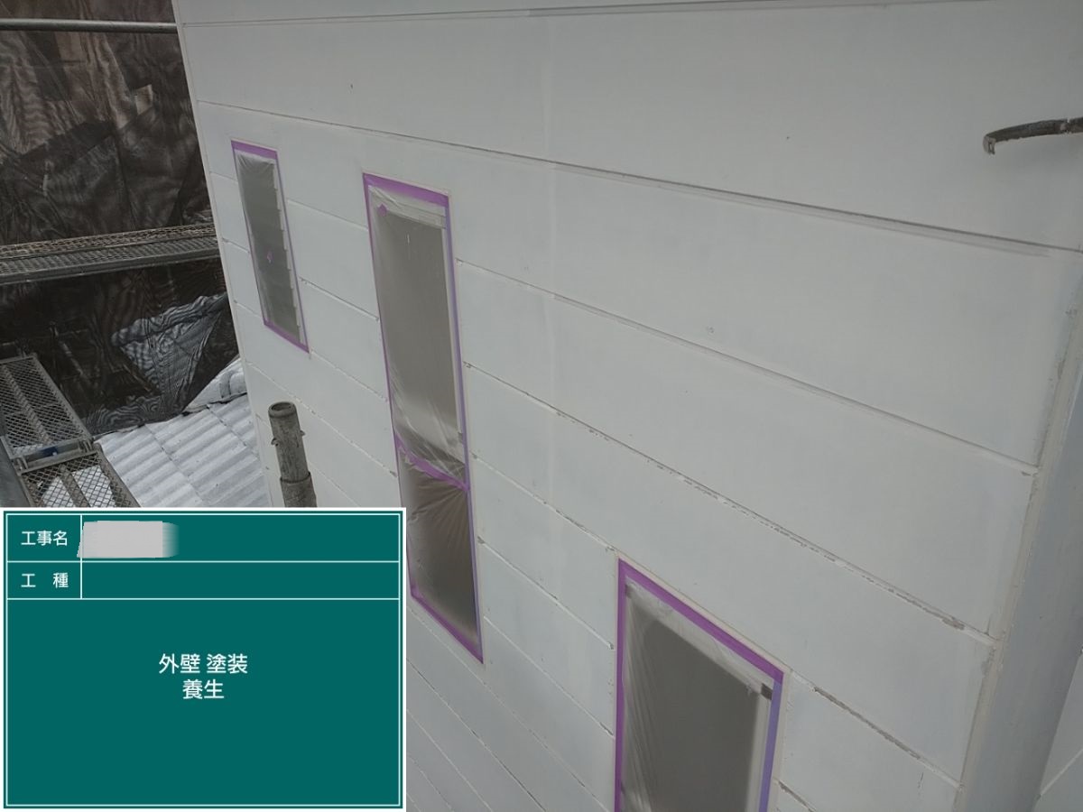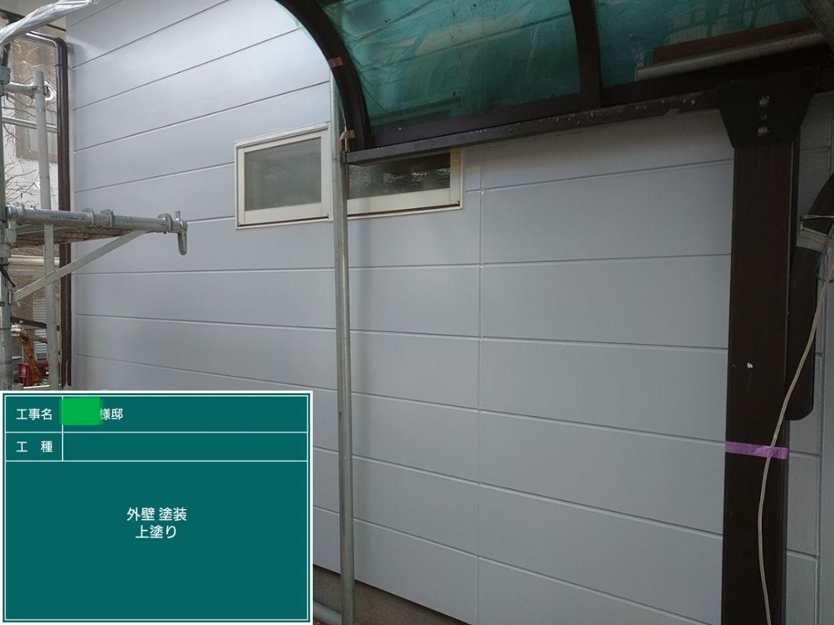 外壁の上塗りを行いました。