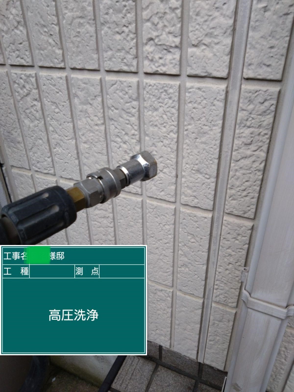 外壁に付着した汚れなどを洗い流します。