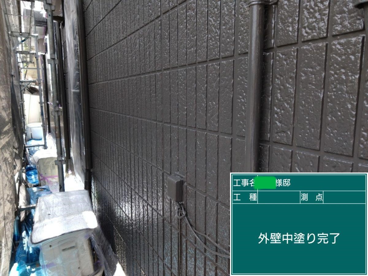 中塗り➡上塗りと2回に分けて塗装する事で性能を耐久年数の間しっかり持続させるために中塗りの塗装が必須です。