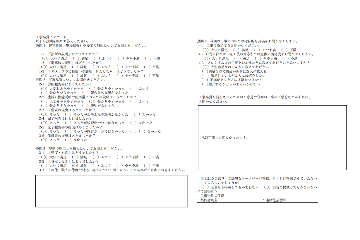 迅速丁寧で大変良かったです。