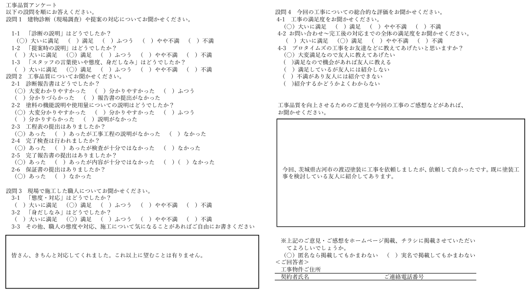 今回、茨城県古河市の渡辺塗装に工事を依頼しましたが、依頼して良かったです。既に塗装工事を検討している友人に紹介してあります。