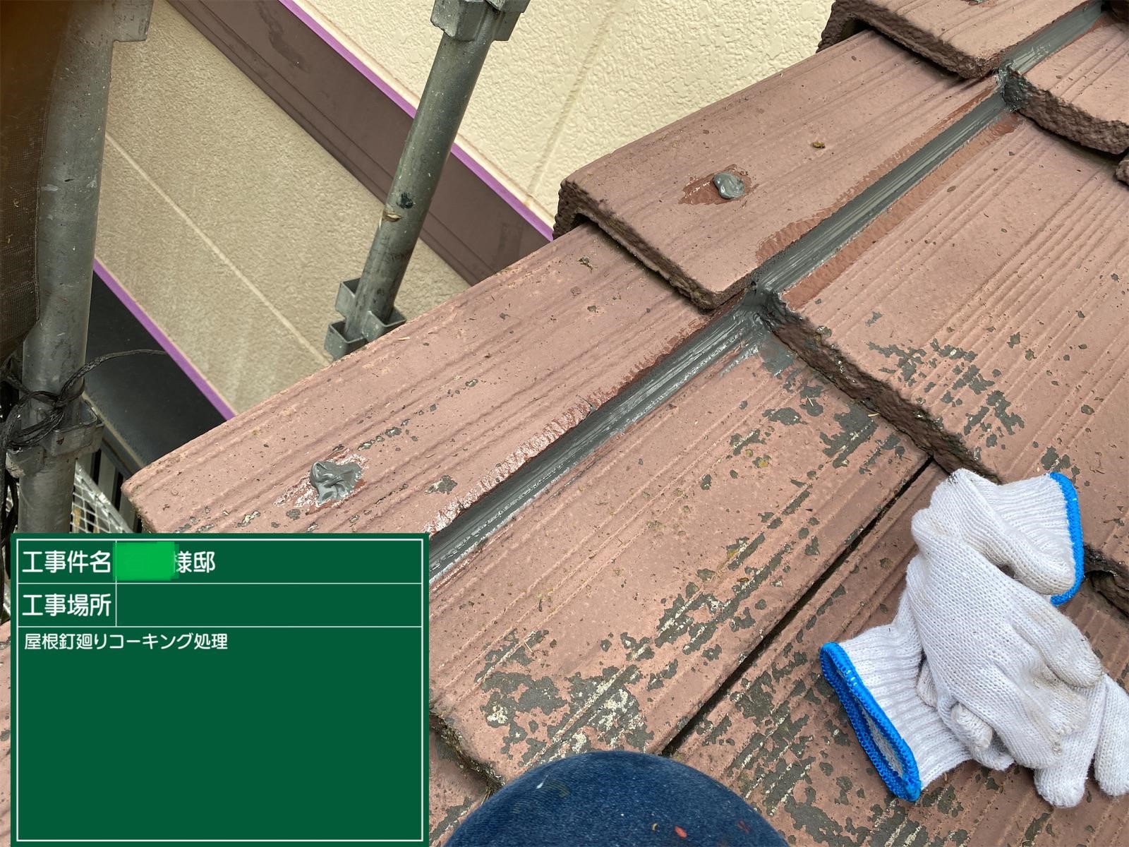 屋根釘廻りコーキング処理