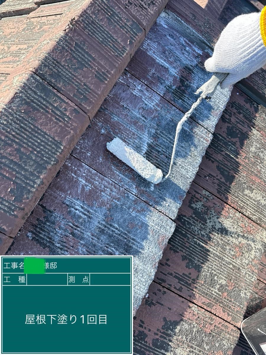 中塗り➡上塗りと2回に分けて塗装する事で性能を耐久年数の間しっかり持続させるために中塗りの塗装が必須です。