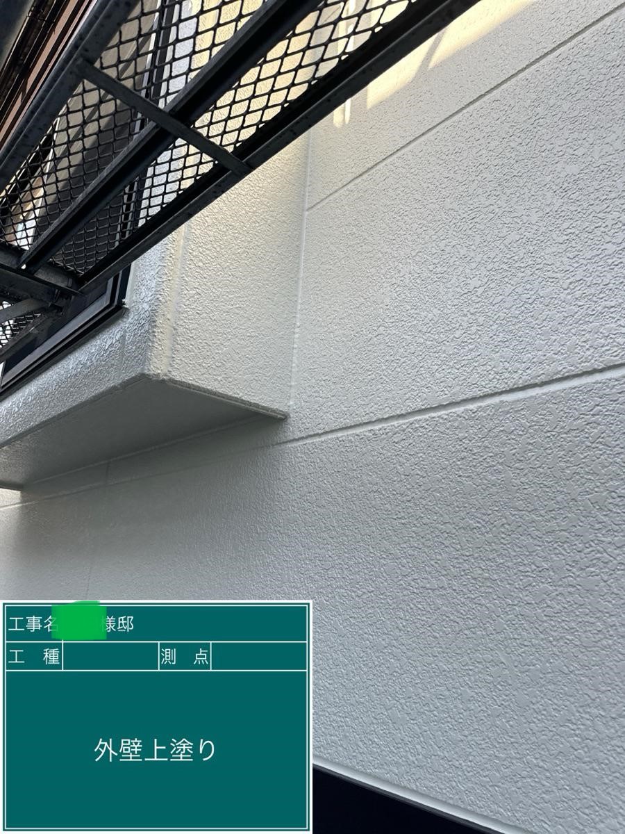 外壁の上塗りを行いました。