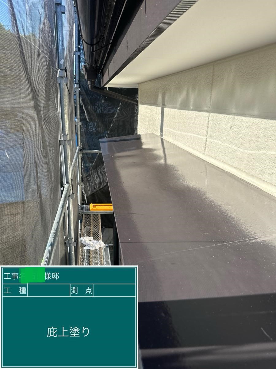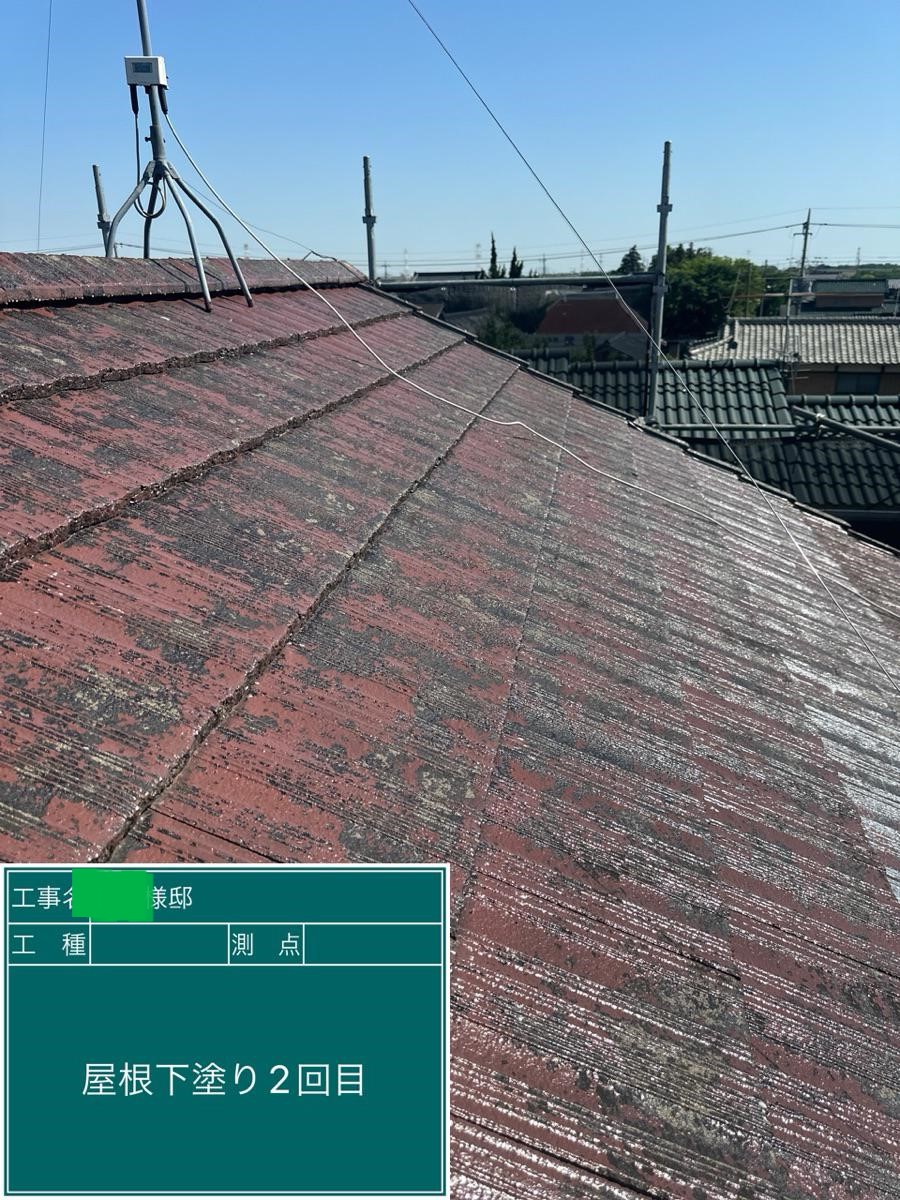 屋根の上塗りを行いました。
