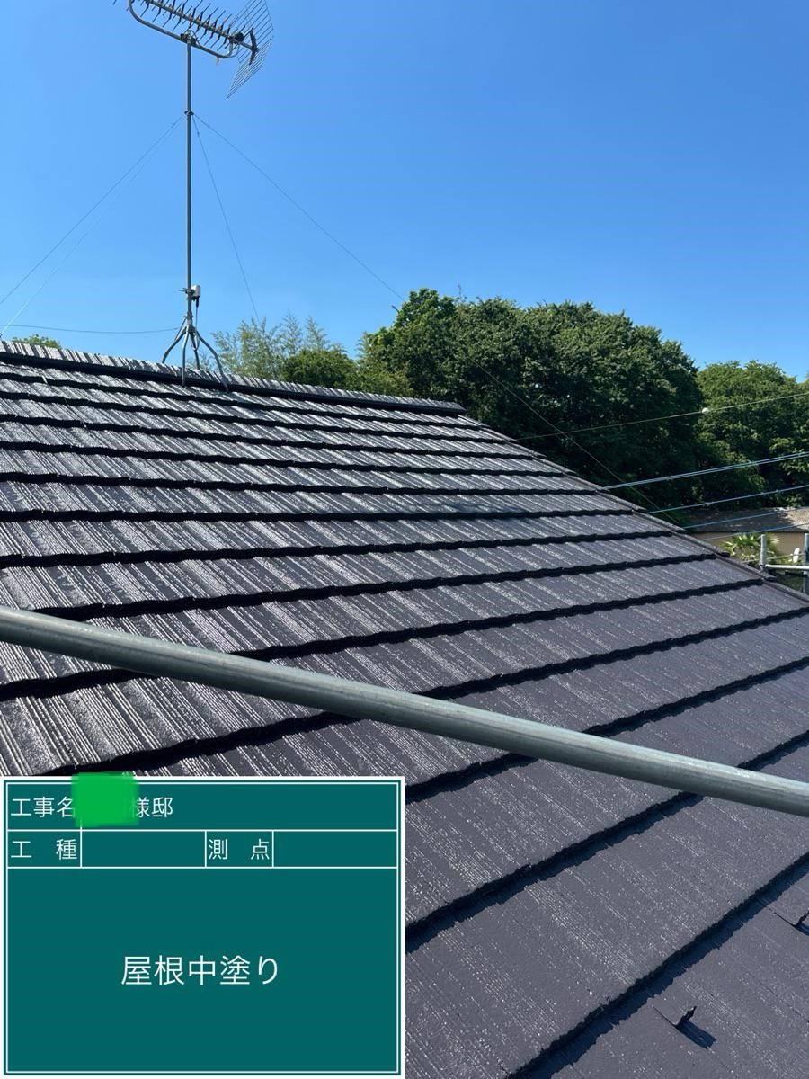 屋根の中塗りを行いました。