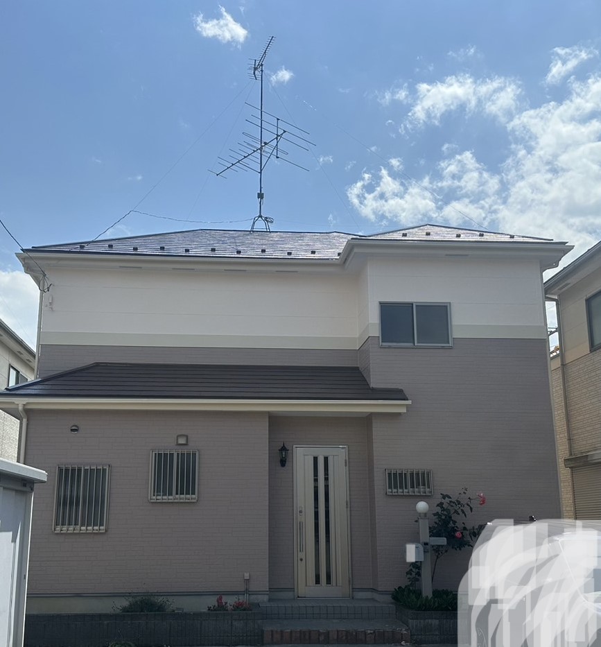 | 使用塗料 | 屋根/アステックペイント/スーパーシャネツサーモF 9115 (マホガニー) 外壁/アステックペイント/超低汚染プラチナリファイン2000Si-IR 1F 8088(モカ) 2F 9002 (オレンジホワイト) |