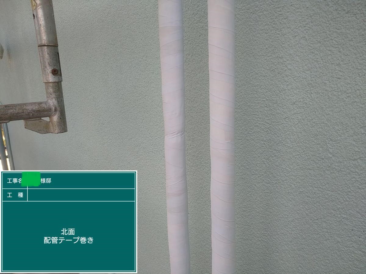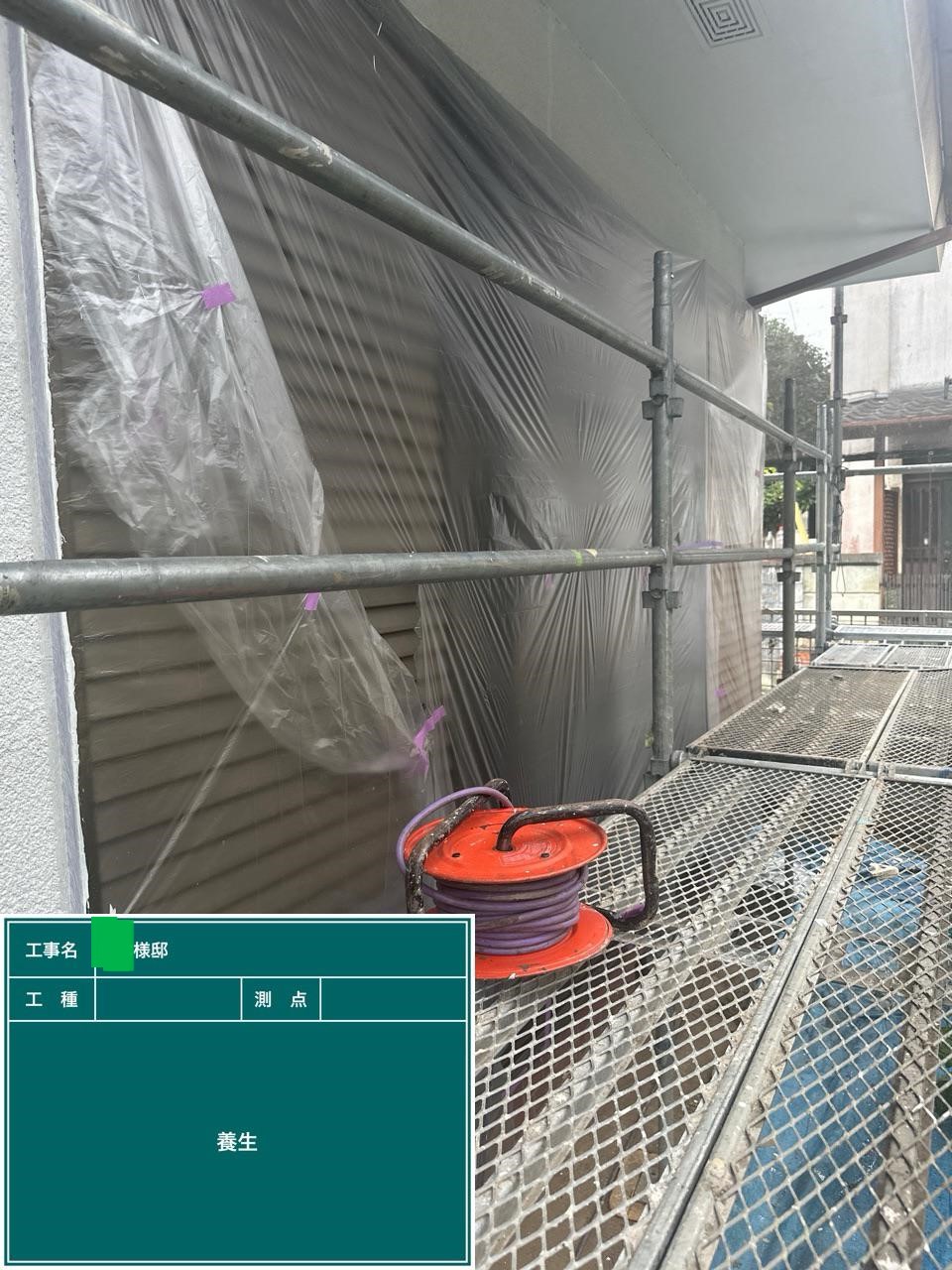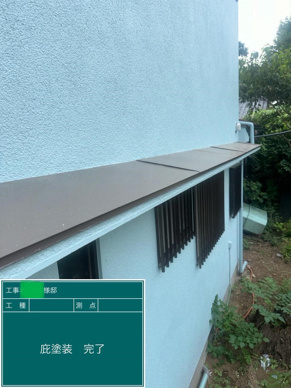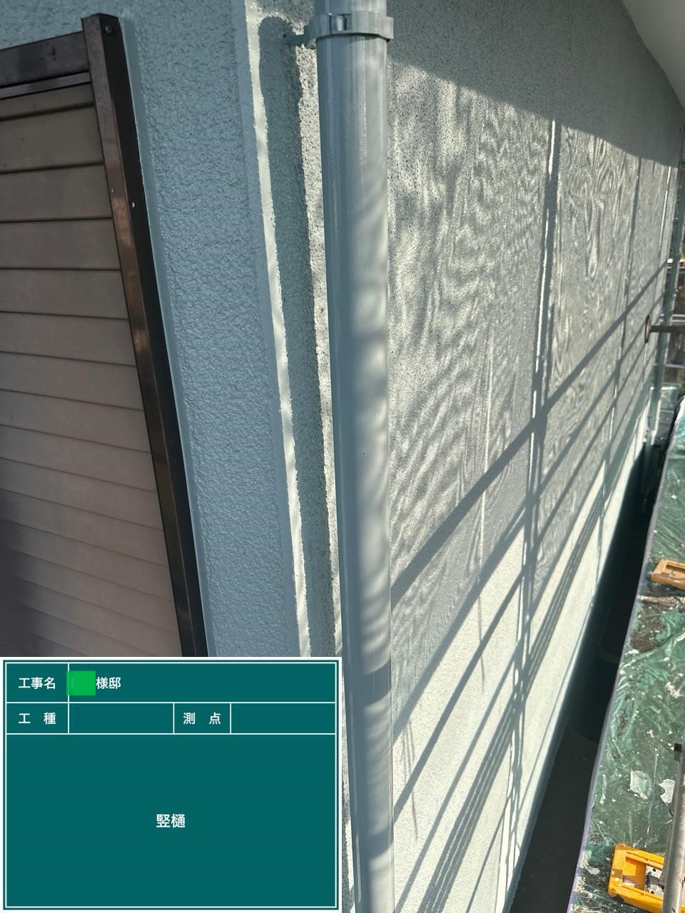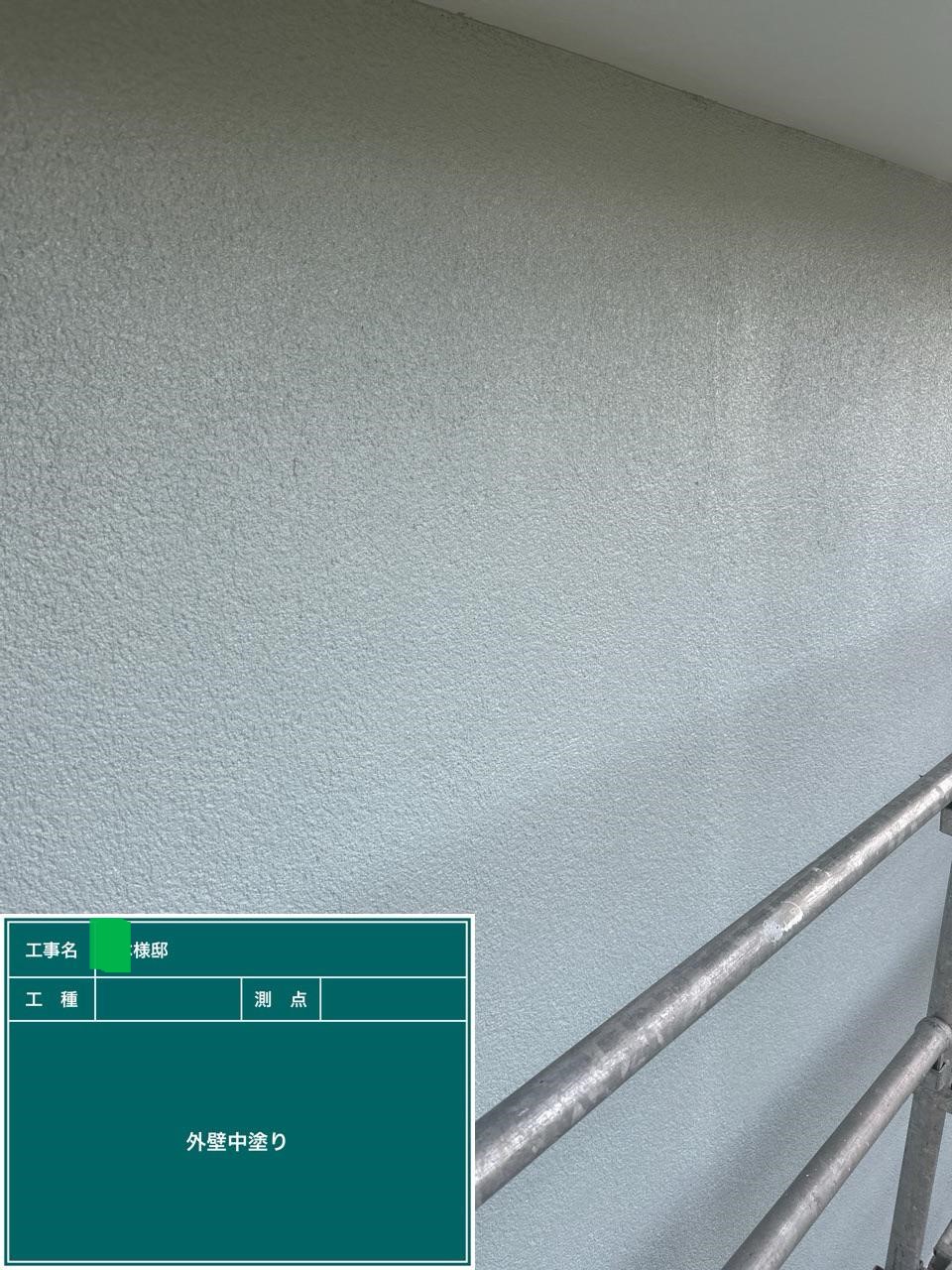 外壁の中塗りを行いました。中塗り➡上塗りと2回に分けて塗装する事で性能を耐久年数の間しっかり持続させるために中塗りの塗装が必須です。