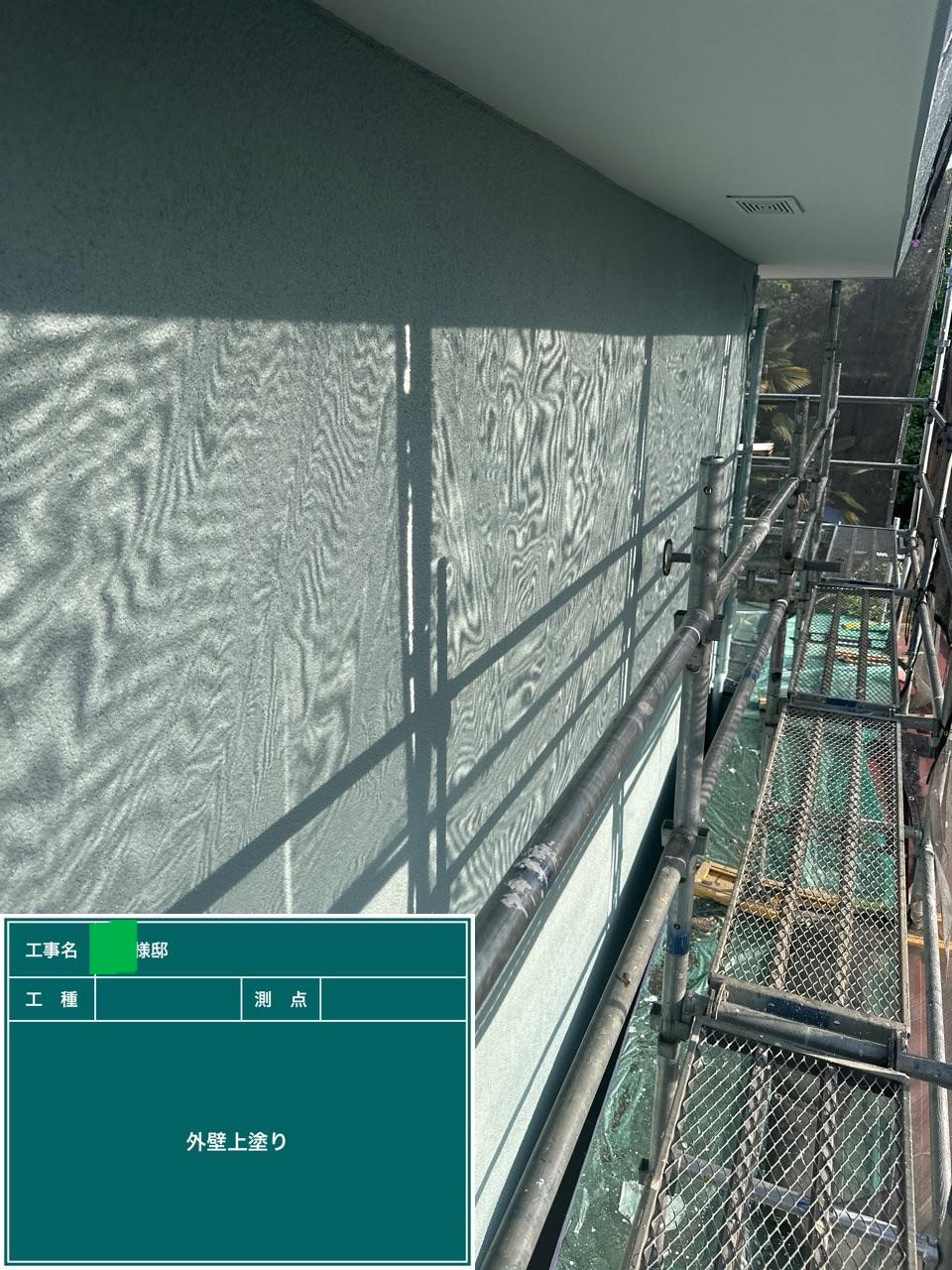 外壁の上塗りを行いました。