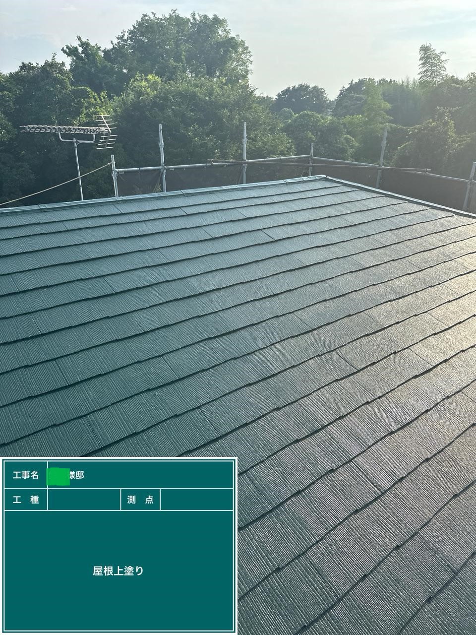 屋根の上塗りを行いました。
