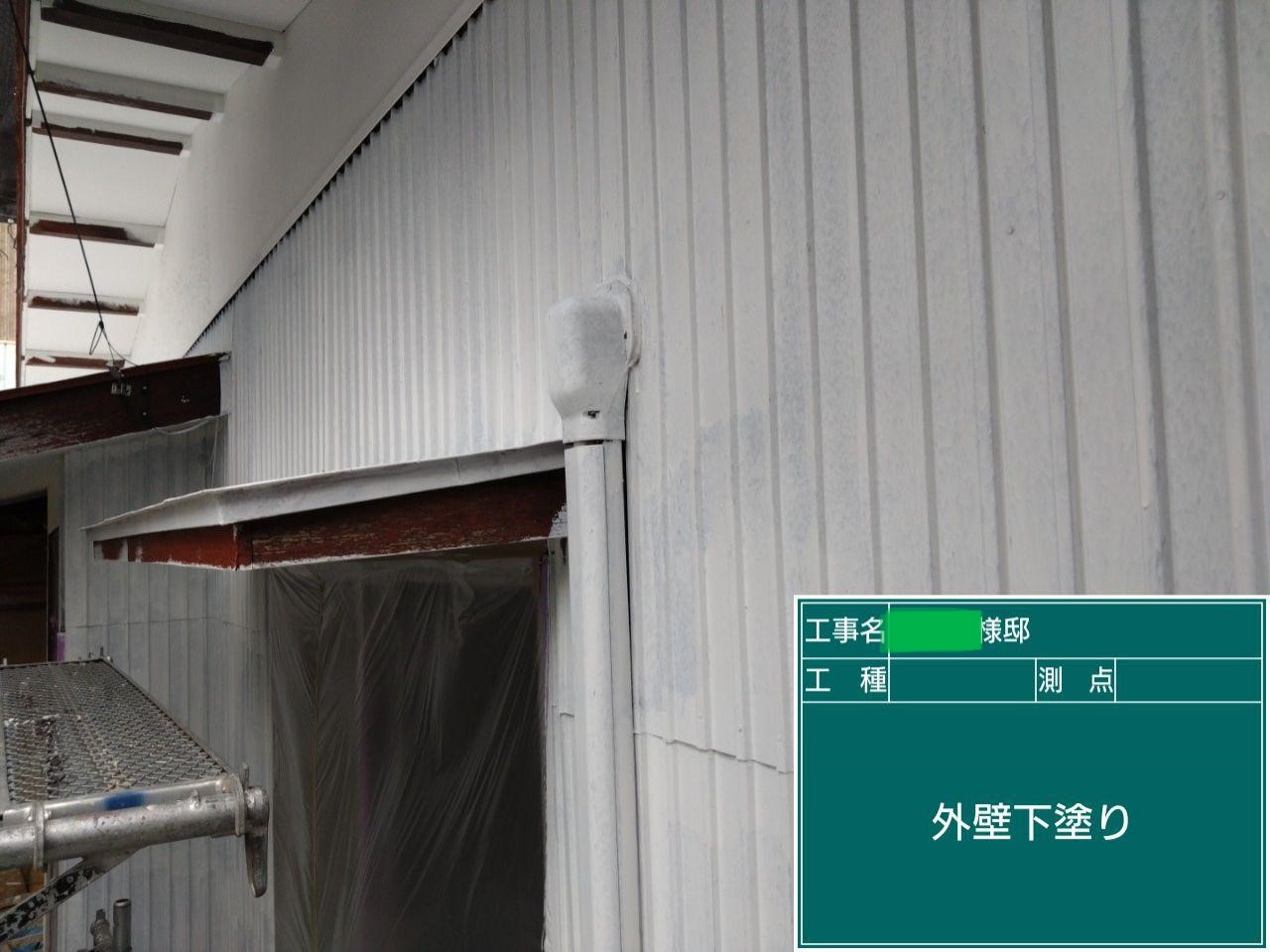 外壁の下塗りを行いました。外壁材と中塗り上塗り塗料との密着力を強め防水性と耐候性に優れた塗膜を作り出します!