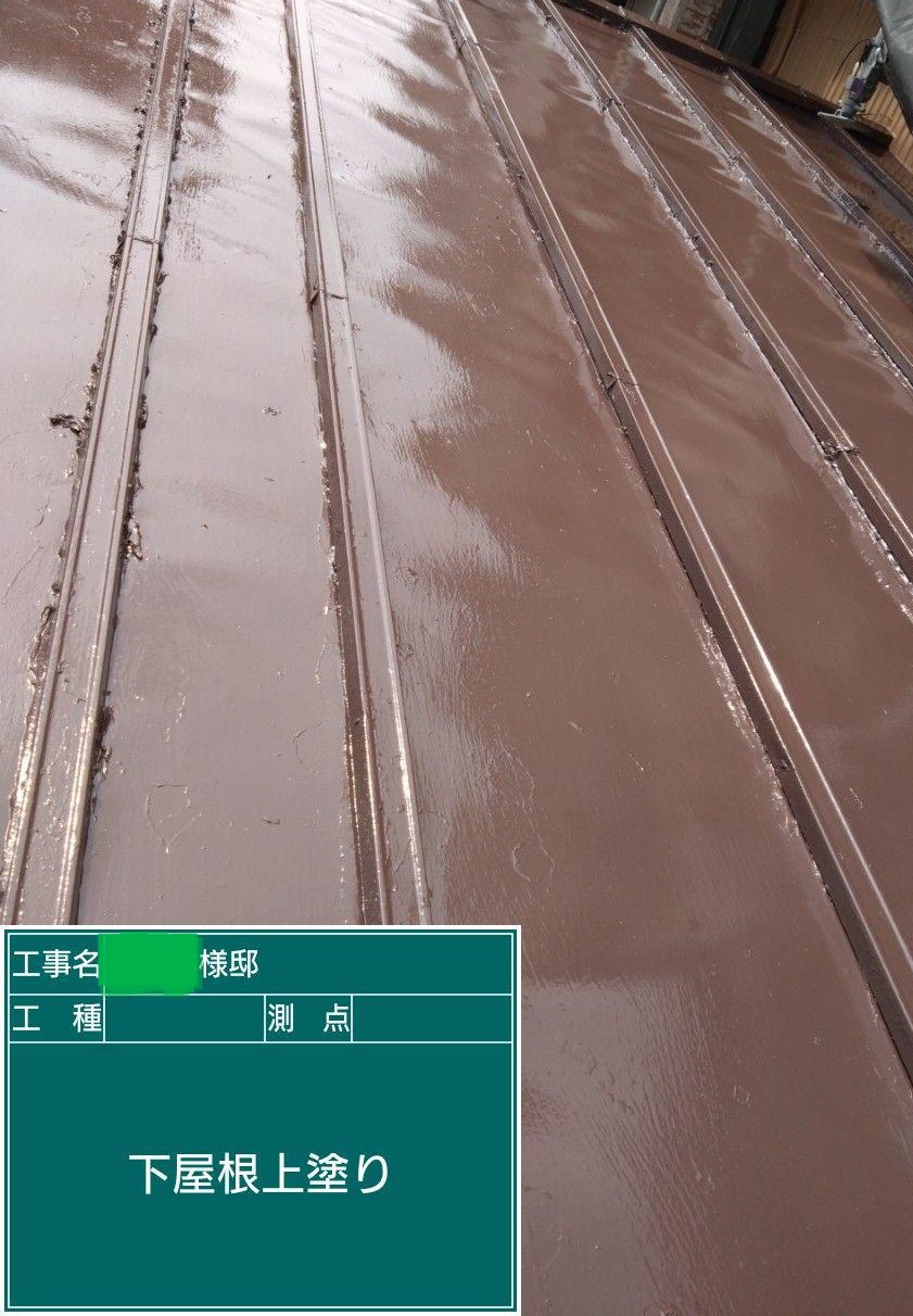 下屋根の上塗りを行いました。