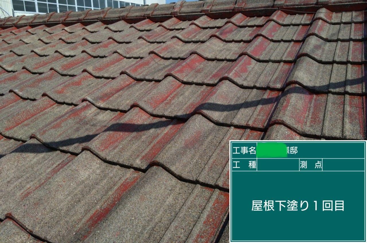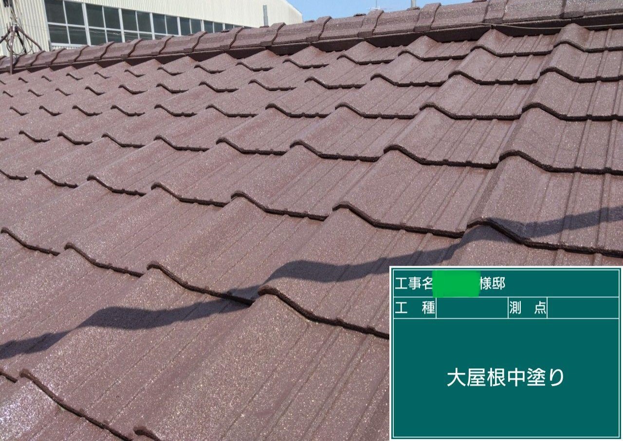 屋根の中塗りを行いました。