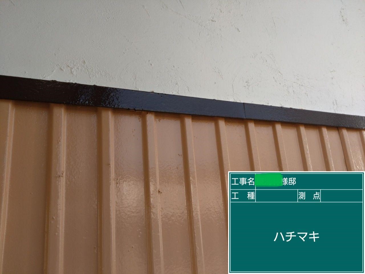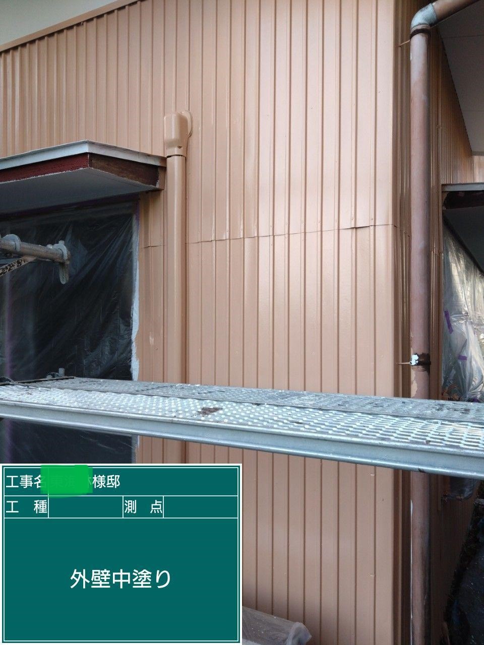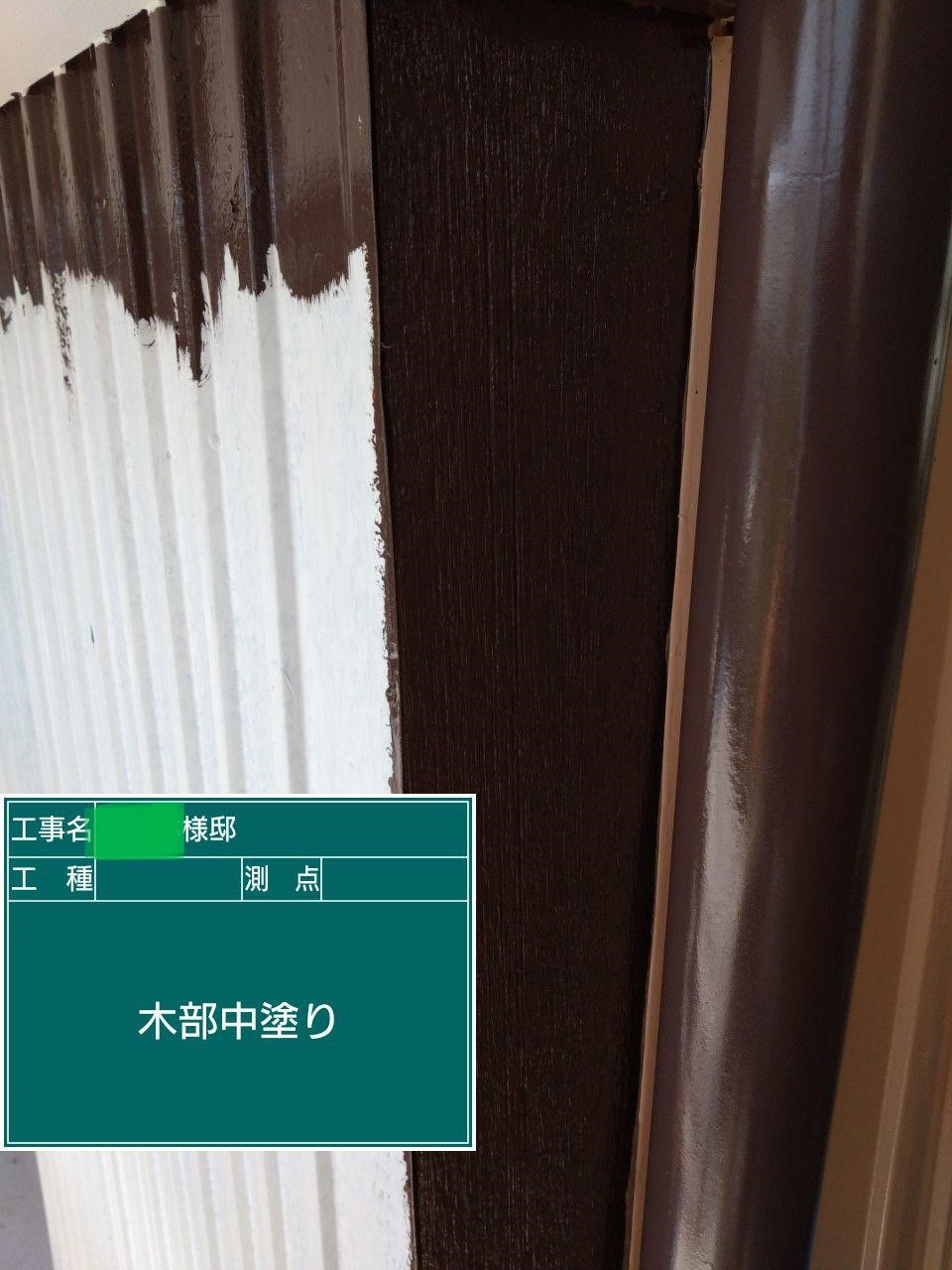 外壁の中塗りを行いました。中塗り➡上塗りと2回に分けて塗装する事で性能を耐久年数の間しっかり持続させるために中塗りの塗装が必須です。