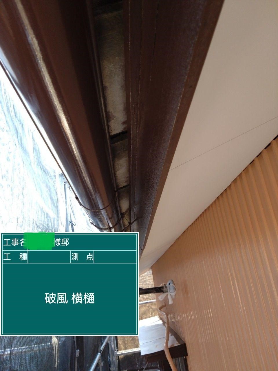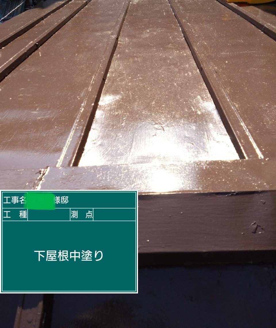 下屋根の中塗りを行いました。
