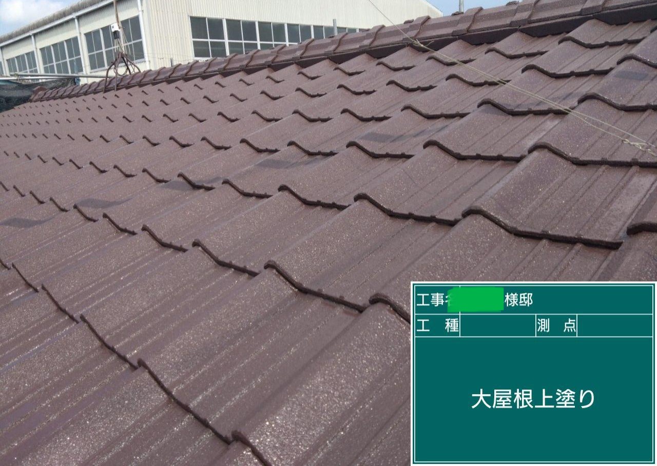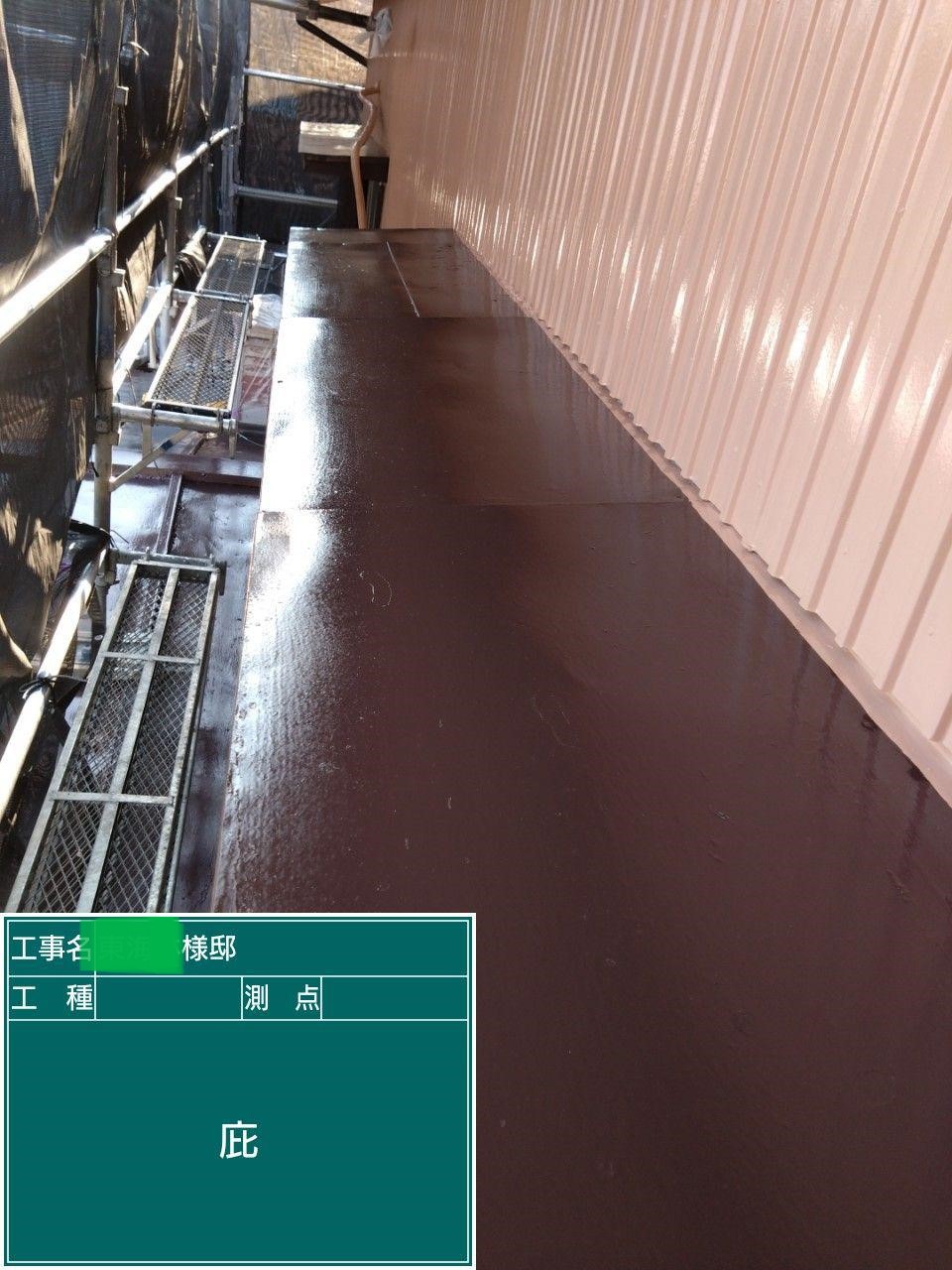 屋根の上塗りを行いました。