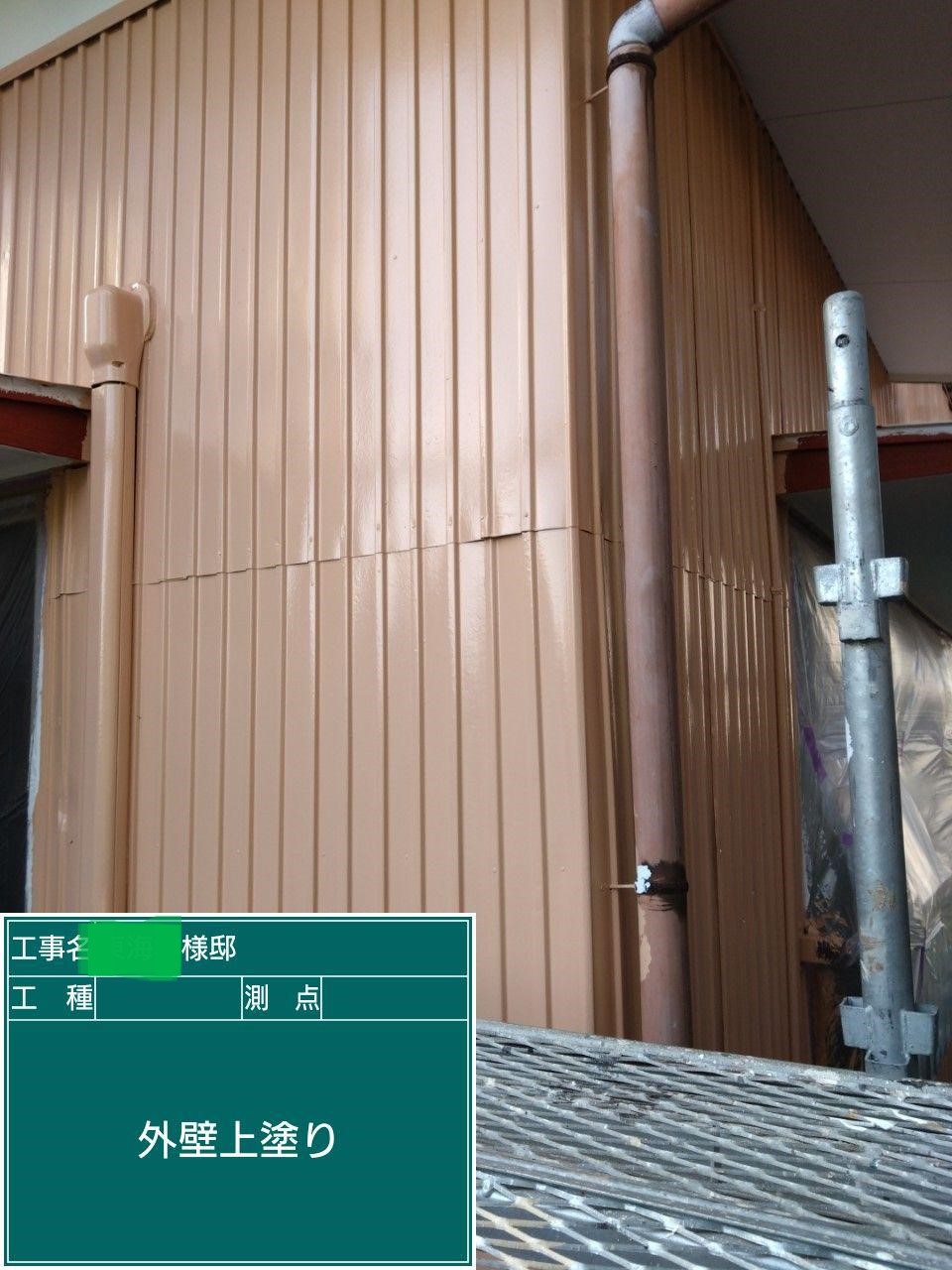 外壁の上塗りを行いました。