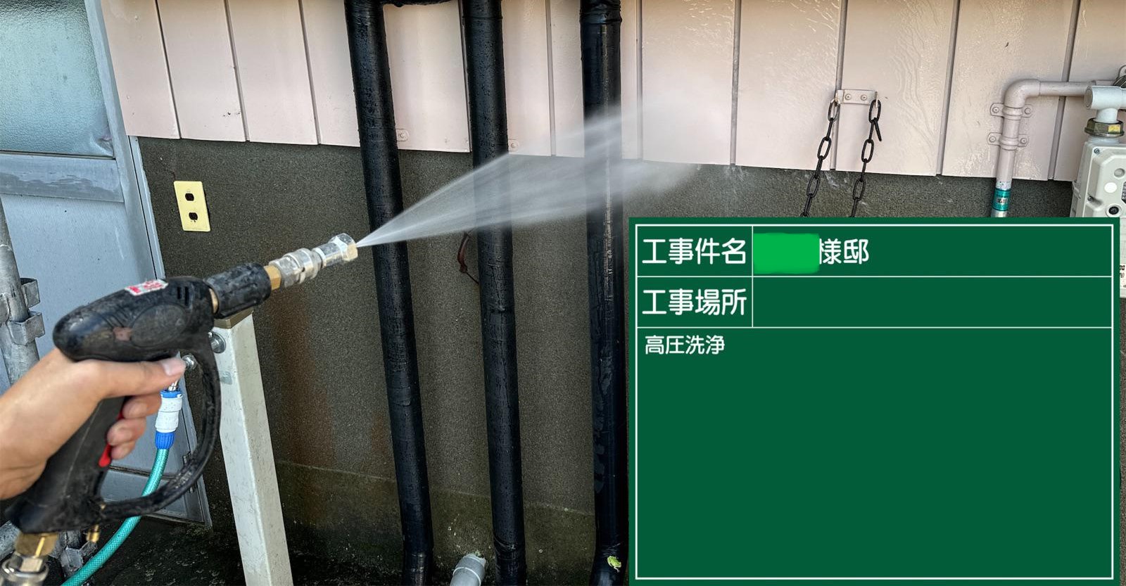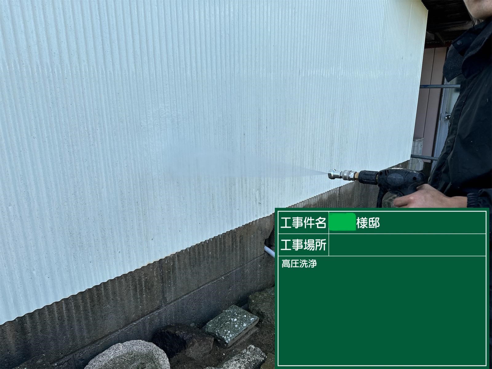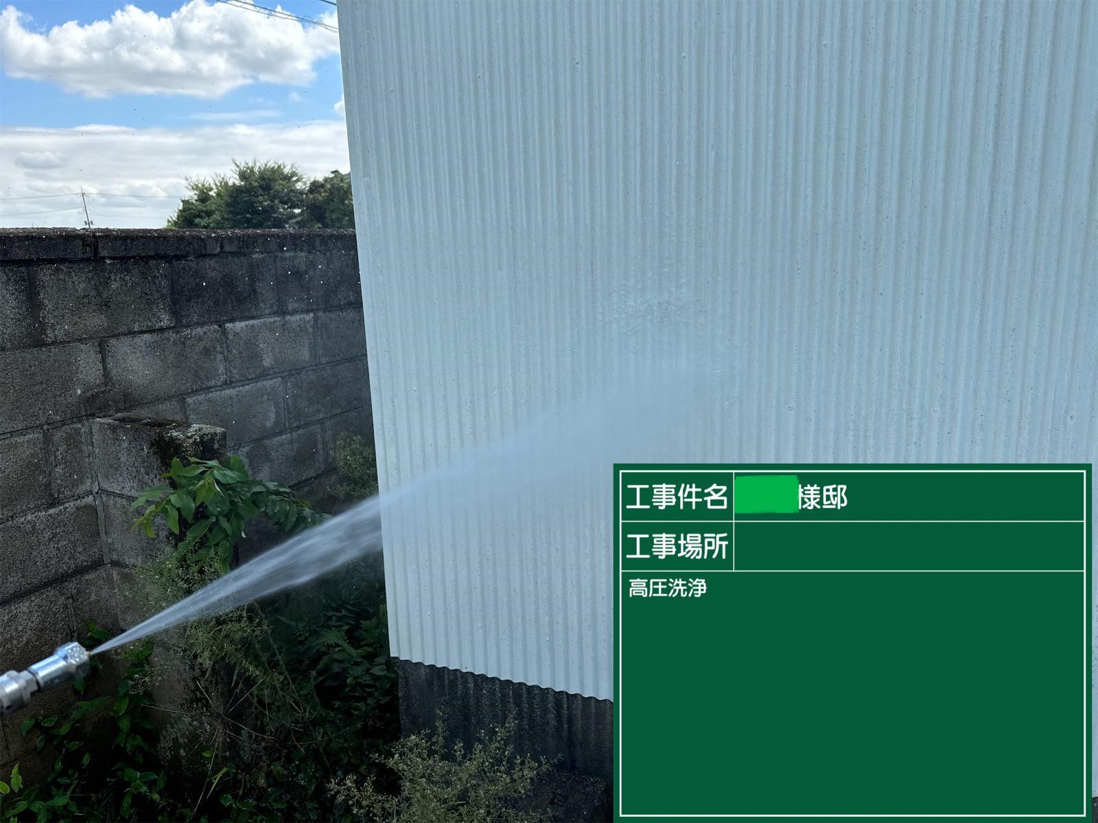 外壁に付着した汚れなどを洗い流します。