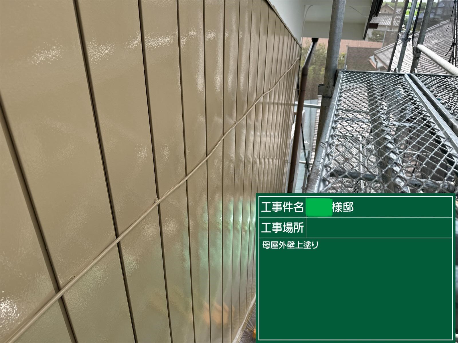 外壁の上塗りを行いました。